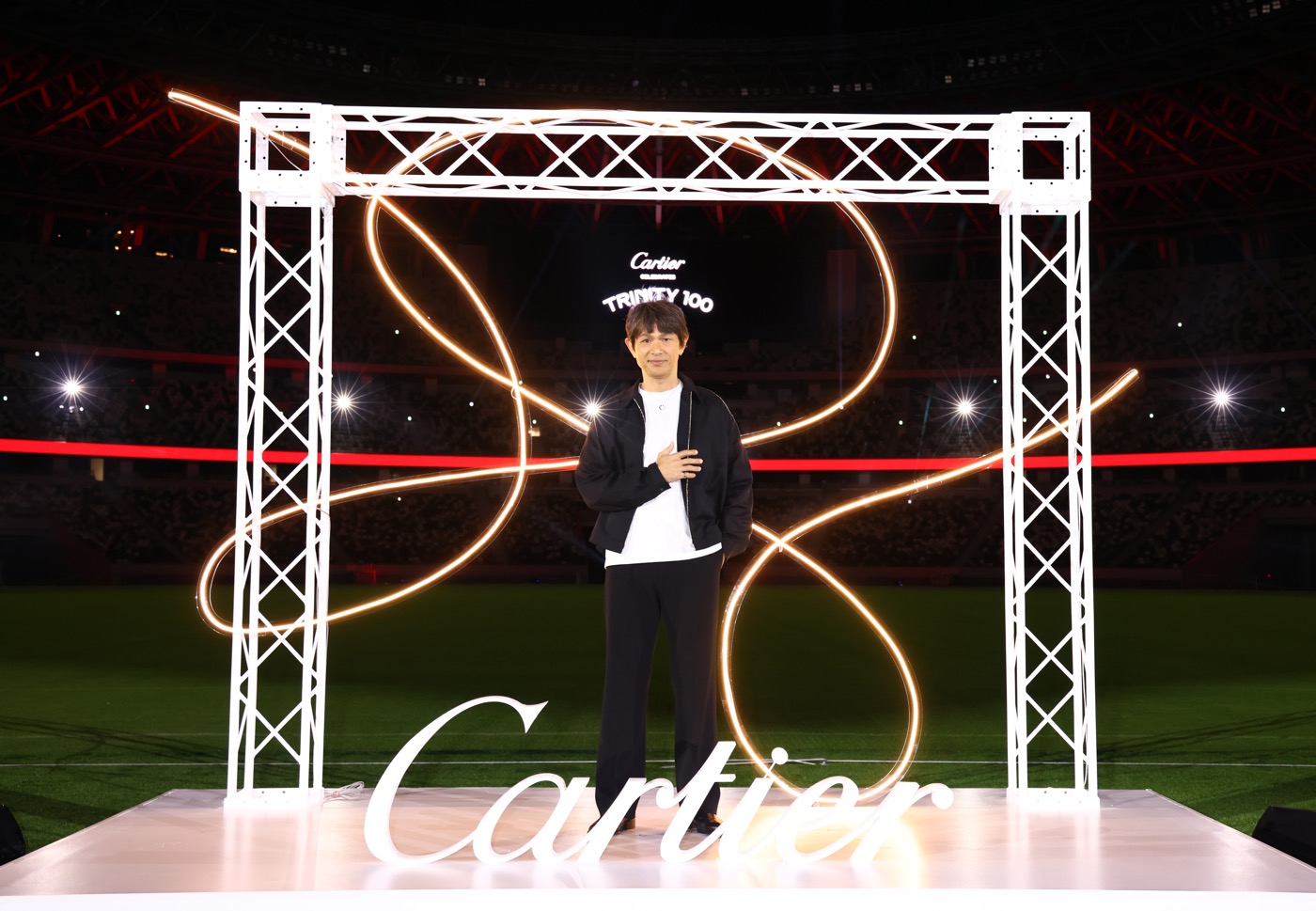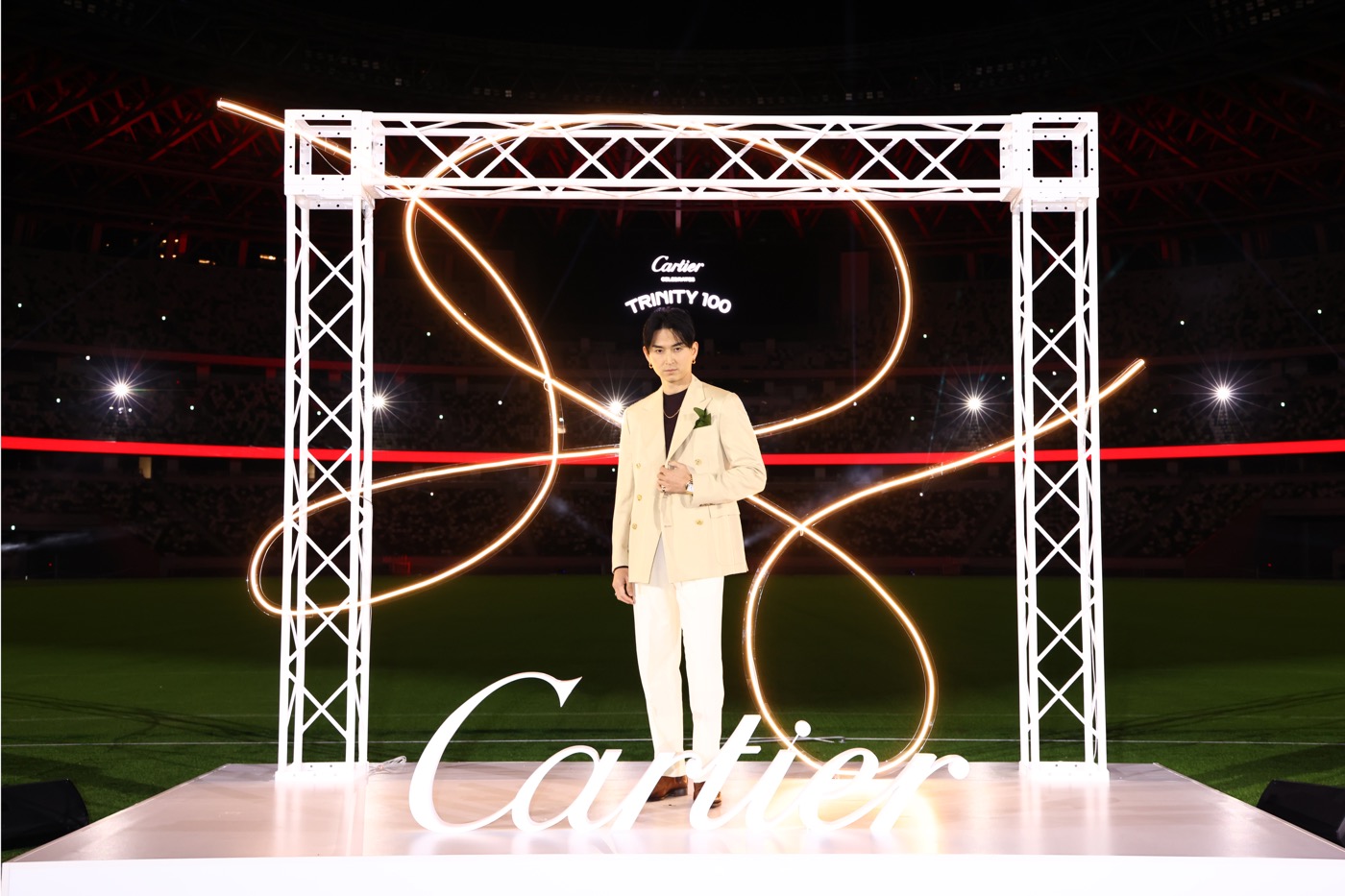 カルティエが、アイコンジュエリー「トリニティ」の誕生100周年を祝して、10月31日より表参道にて『“TRINITY 100” ポップアップ』を開催。開催に先駆けて『“TRINITY 100” セレブレーションパーティ』が国立競技場で行われ、豪華ゲストが集結した。