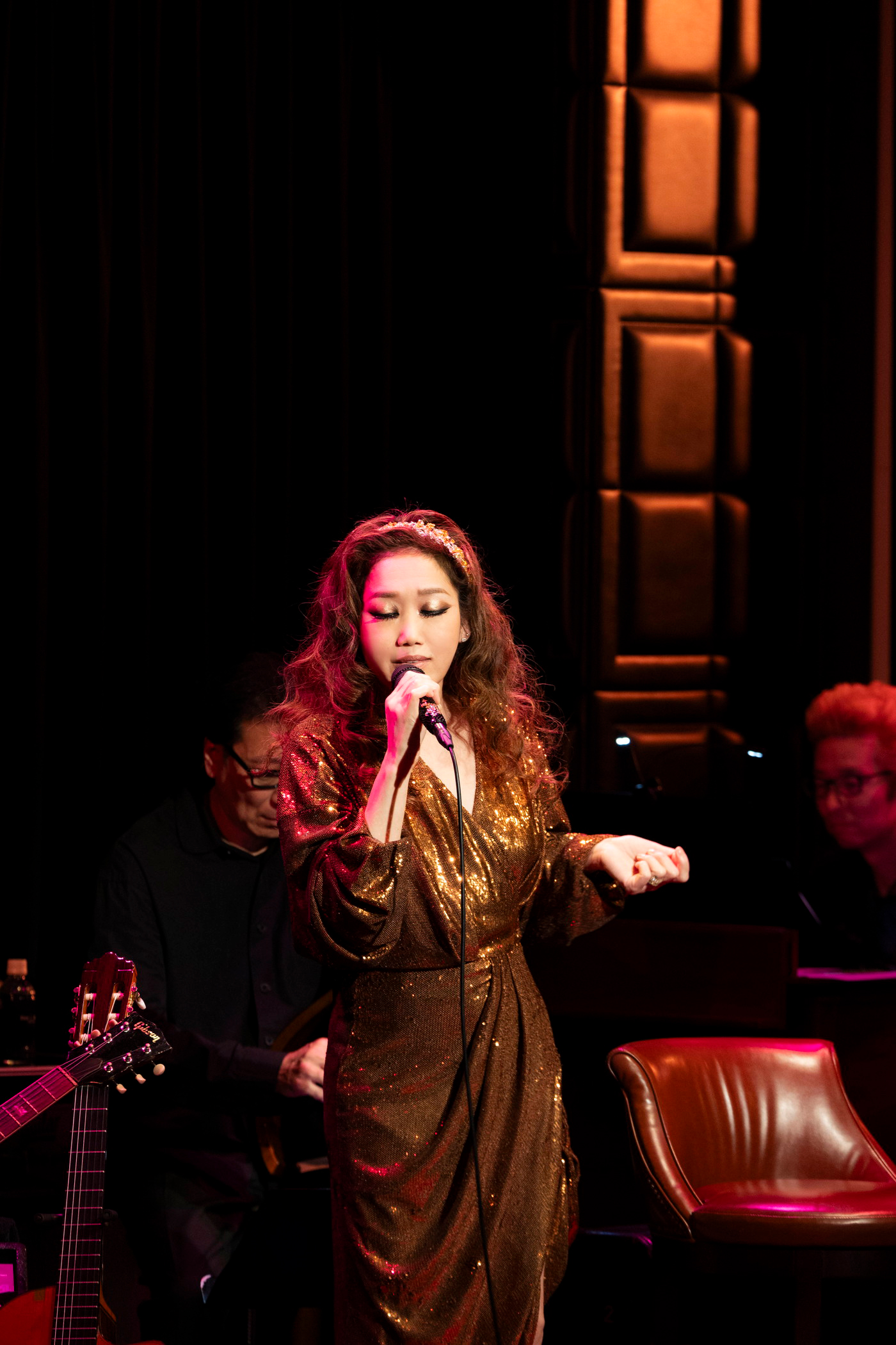 恋の熱を帯びていく「All The Things You Are」、続く「More Than You Know」では、ハイチェアに腰かけ足を組んで雰囲気たっぷりに歌い、「あなたが思ってる以上にあなたのことばかりを考えてしまうし、あなたが思ってる以上にあなたに夢中になっている」という歌の物語の心象風景を伝えた。