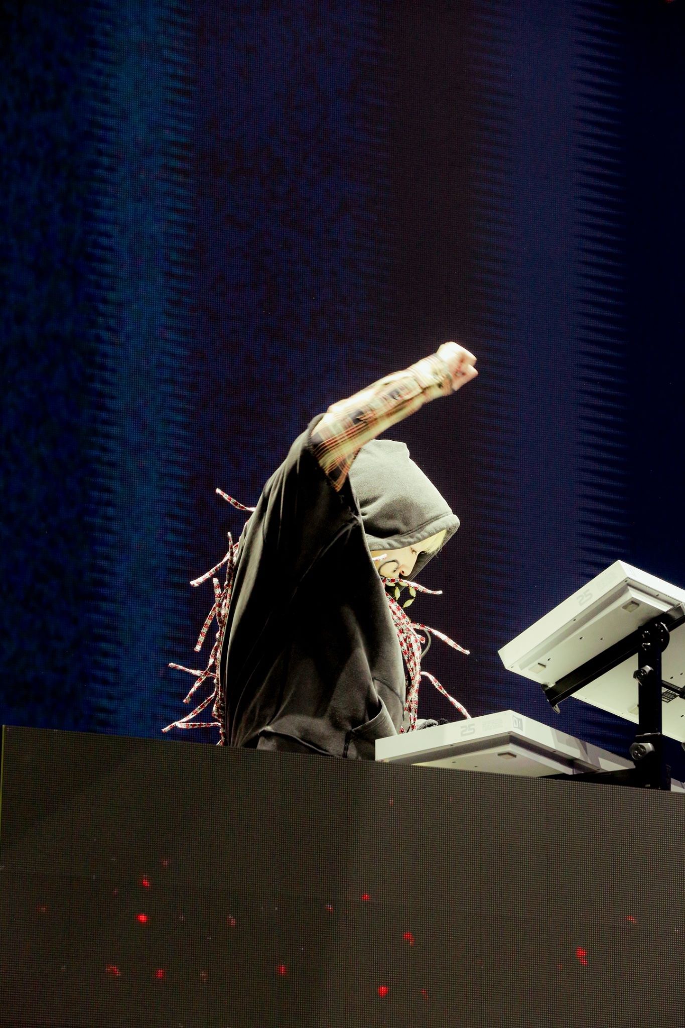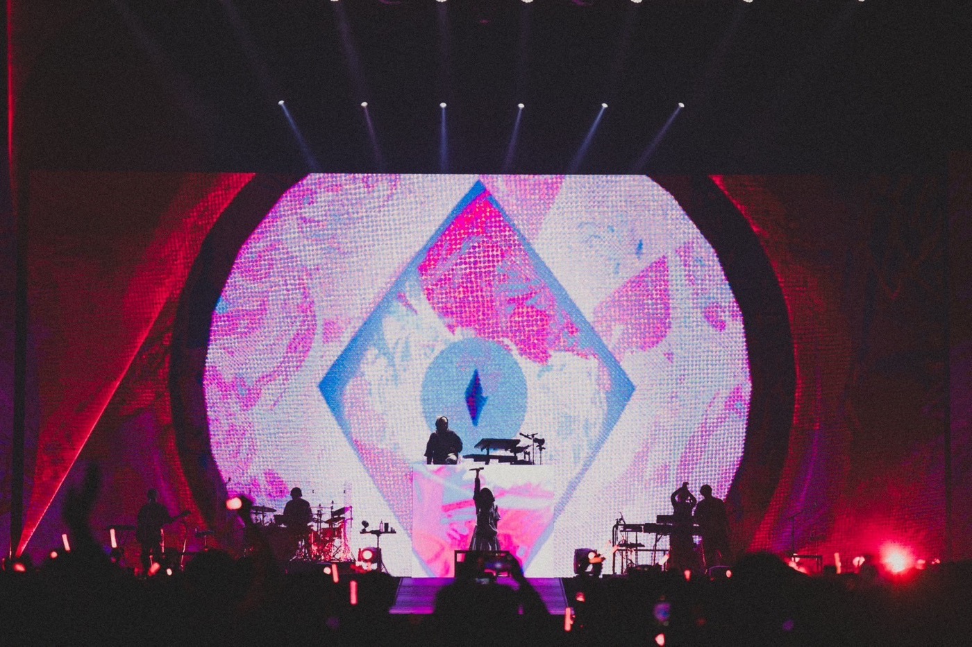 国内ドーム公演のコンセプトを継承する今ツアーは、巨大なモンスターがLEDの向こうから侵食してくるような映像から始まり、Ayaseとikuraがステージへと姿を現す。「セブンティーン」のイントロが観客のボルテージを一気に引き上げ、続く「祝福」「UNDEAD」というアニメ主題歌としても人気の楽曲が、『超現実』の演出と相まって会場を熱狂させる。