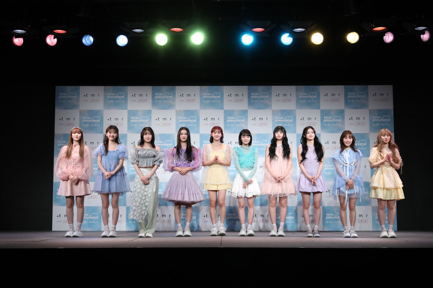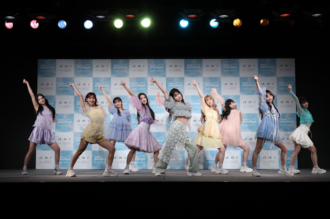 ダンス披露後は、12月18日よりRand表参道にて5日間限定で行われる、楽曲「Tomorrow」におけるコラボムービーの世界観である「明日が、未来が、もっと楽しみになる。」をテーマに作られた空間で様々なコンテンツを体験できるポップアップイベント『tmr playland』(トゥモロープレイランド)の告知映像を全員で鑑賞。