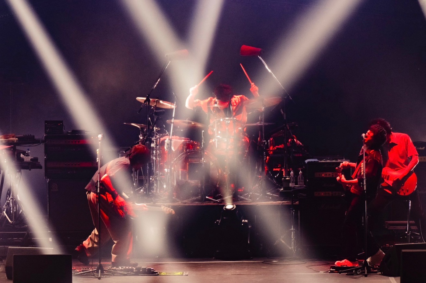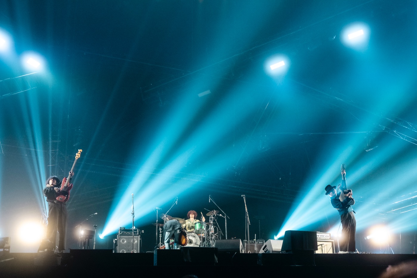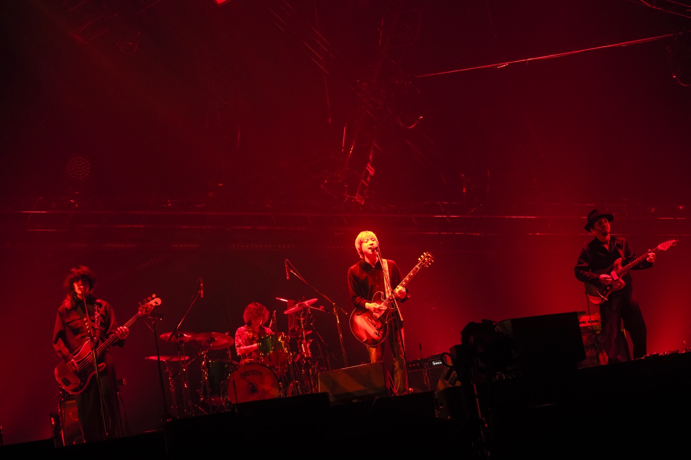 「呼んでもらえて、ここに立たせてもらえて、とてもうれしく思っています」という尾崎のMCに続けて、さらに「しょうもな」「イト」「栞」でマリンメッセ福岡の大空間をダイナミックに揺さぶっていくクリープハイプ。「『清水依与吏になりたい』と――悔しいな、いいなと思っていた時もあったけど、自分は自分がいい、尾崎世界観がいいなって、最近は思っています。これからも、あの人のライバルとして、尾崎世界観をやっていこうと思っています」……そんな言葉に続けて尾崎が歌い上げたのは、back number「水平線」のカバーだった。清水が憧れた唯一無二のハイトーンボイスが、時代を席巻したback numberのバラードと響き合う。対バンツアーのファイナルならではの名場面だった。珠玉のアクトを「天の声」「二十九、三十」で締め括り、深々と一礼する4人に、惜しみない拍手喝采が巻き起こっていった。