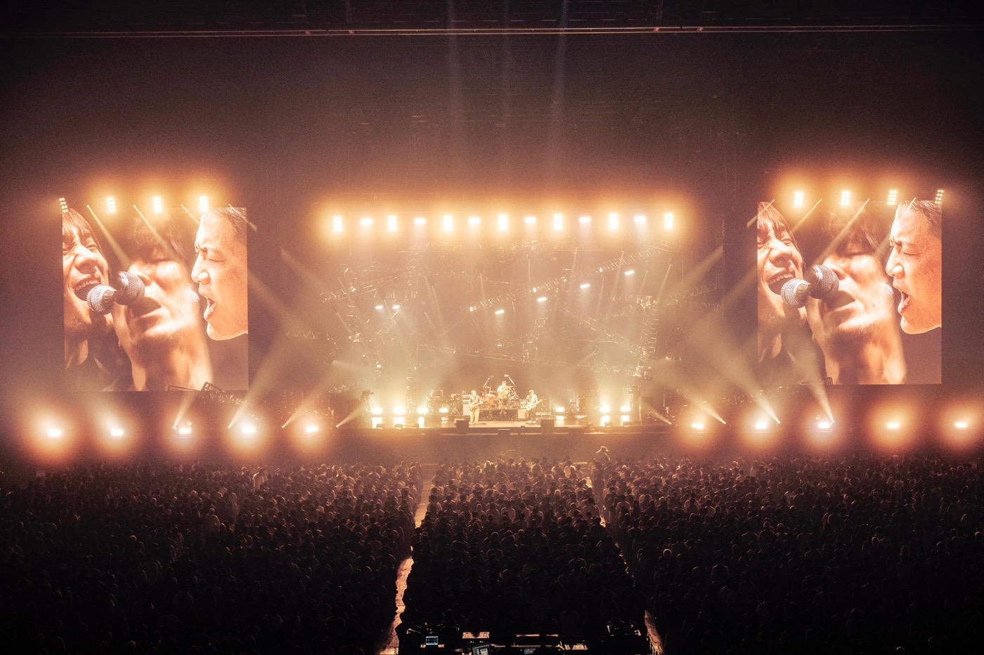 栗原の「いけるか福岡!」のコールとともに、「最深部」「ロンリネス」からライブは後半戦へ。サビのメロディを観客に委ねる清水に応えて、高らかな大合唱が広がった「花束」。己のすべてを振り絞るような鬼気迫る歌を聴かせた「ハッピーエンド」。「新しい恋人達に」の直前、「俺はあなたに出会って、俺になった」と語りかける清水の言葉が、広大なアリーナを濃密な一体感で包んでいく。