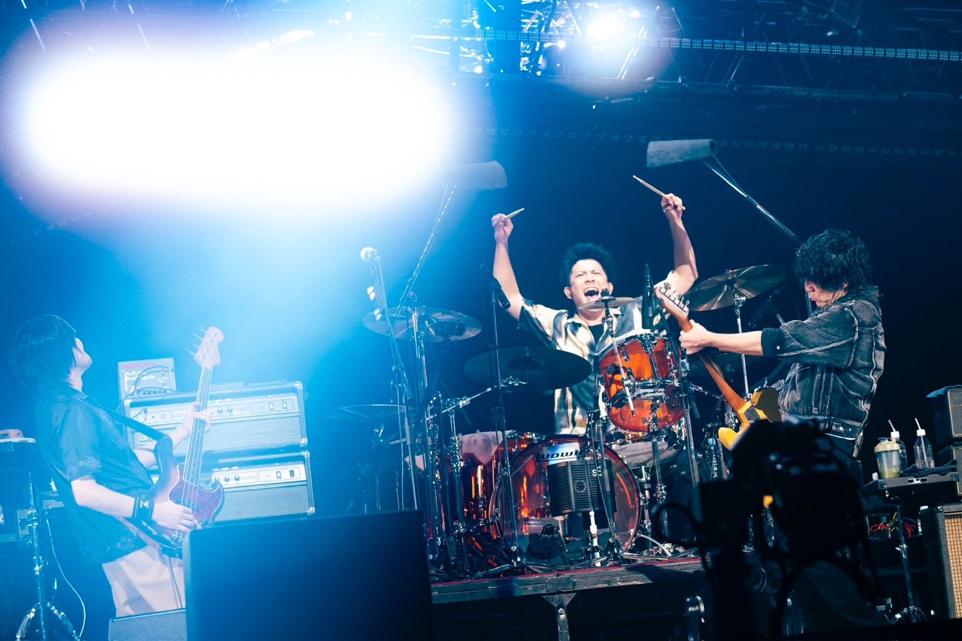 そしてback number。サポートメンバーとともに、「高嶺の花子さん」イントロのストリングスを開演SEとして登場した清水依与吏/小島和也(Ba&Cho)/栗原寿(Dr)は、すでに先ほどのクリープハイプの熱演に感極まっているように見える。「よろしくお願いします!」と声の限りに叫ぶ清水の姿は、ツアーファイナルの多幸感よりも、自分の存在証明を今この場にゼロから刻み付けようとするかのような切迫感に満ちていた。