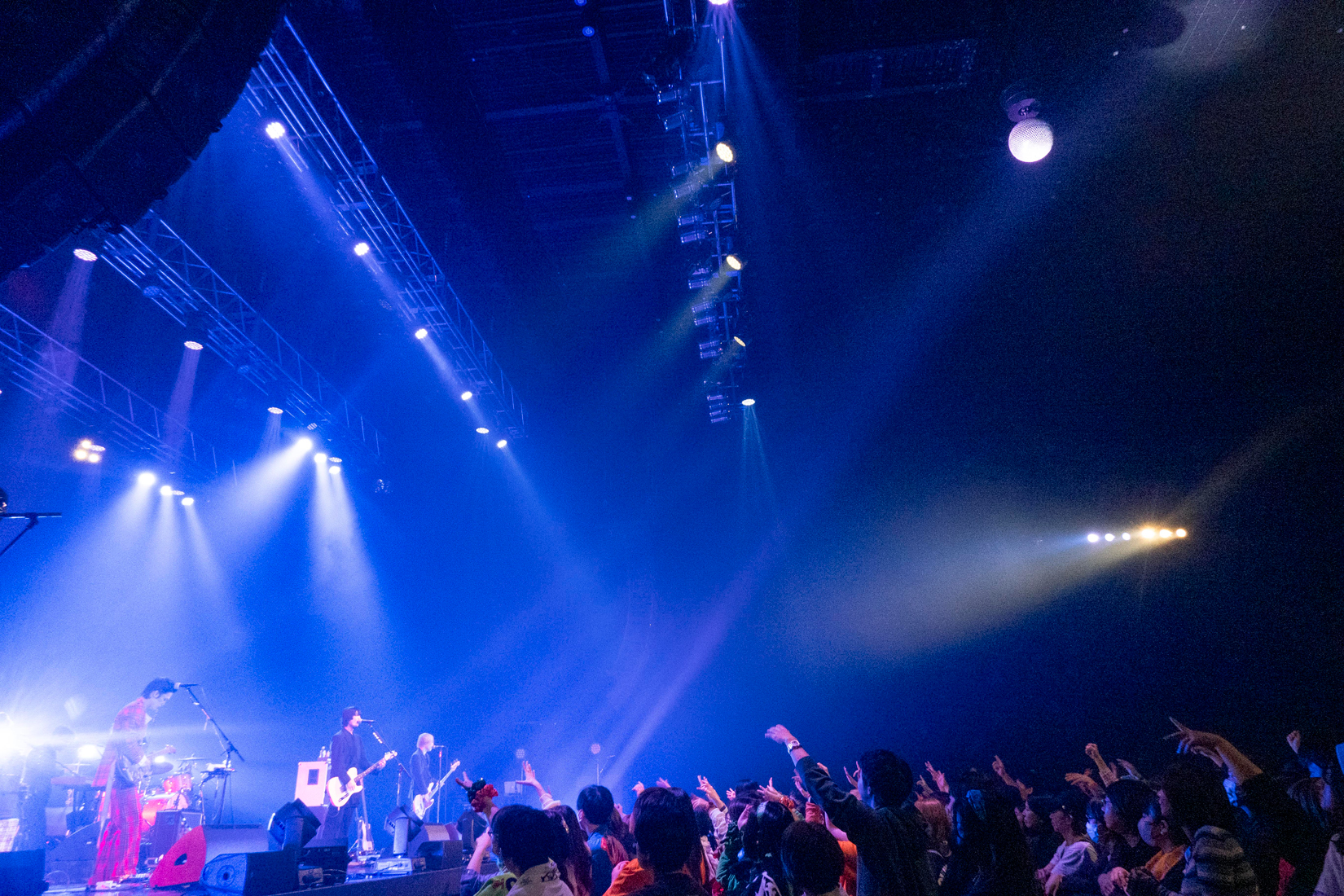 「カモン、コウキ!俺達の歌、歌います!」(ショウ)というシャウトに導かれたのは、「90’S TOKYO BOYS」。濃密にしてしなやかなファンク・ロック・グルーヴが響き、オーディエンスは気持ちよさそうに身体を揺らし始める。“倒され 汚され 笑われそれでも今また俺は立ち上がる”という勇敢なフレーズから始まったのは、「ROCKY」。