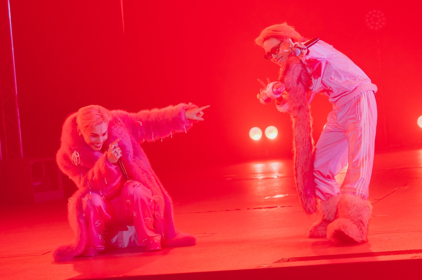 続けて、JO1のライブツアーでのユニット曲「BINGO」では、川尻蓮がサプライズ登場。お互いのソロステージに出演し合ったふたり。川尻の服装をみた川西は、「なんかピンクじゃね?」と笑い、川尻は「誰が言ってんねん!」と返す。川西のメンバーカラーであるピンクだらけのふたりは、互いをリスペクトし合う表現者としての戦友同士。そんなふたりならではのパフォーマンスを繰り広げた。
