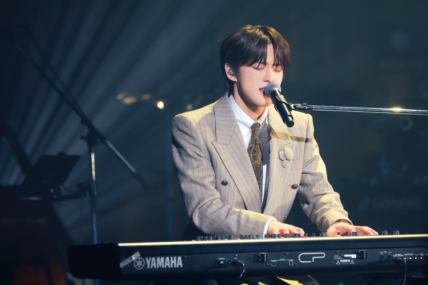 続いて、「これ本当に緊張します…」と河野がピアノに向き合うと、ざわざわと驚喜の声が上がっていきく。初めてピアノでの弾き語りで披露するのは、河野が初めてひとりで歌ってみせたJO1の楽曲。「その時はすごく緊張して、震えた手を握りしめながら歌ったなということを今でも覚えています」と大人気YouTube企画『THE FIRST TAKE』で「Voice (君の声)」を歌った約4年前を振り返り。こうして大事に思ってきた曲を、今回は初挑戦のピアノとともに歌い届けた。