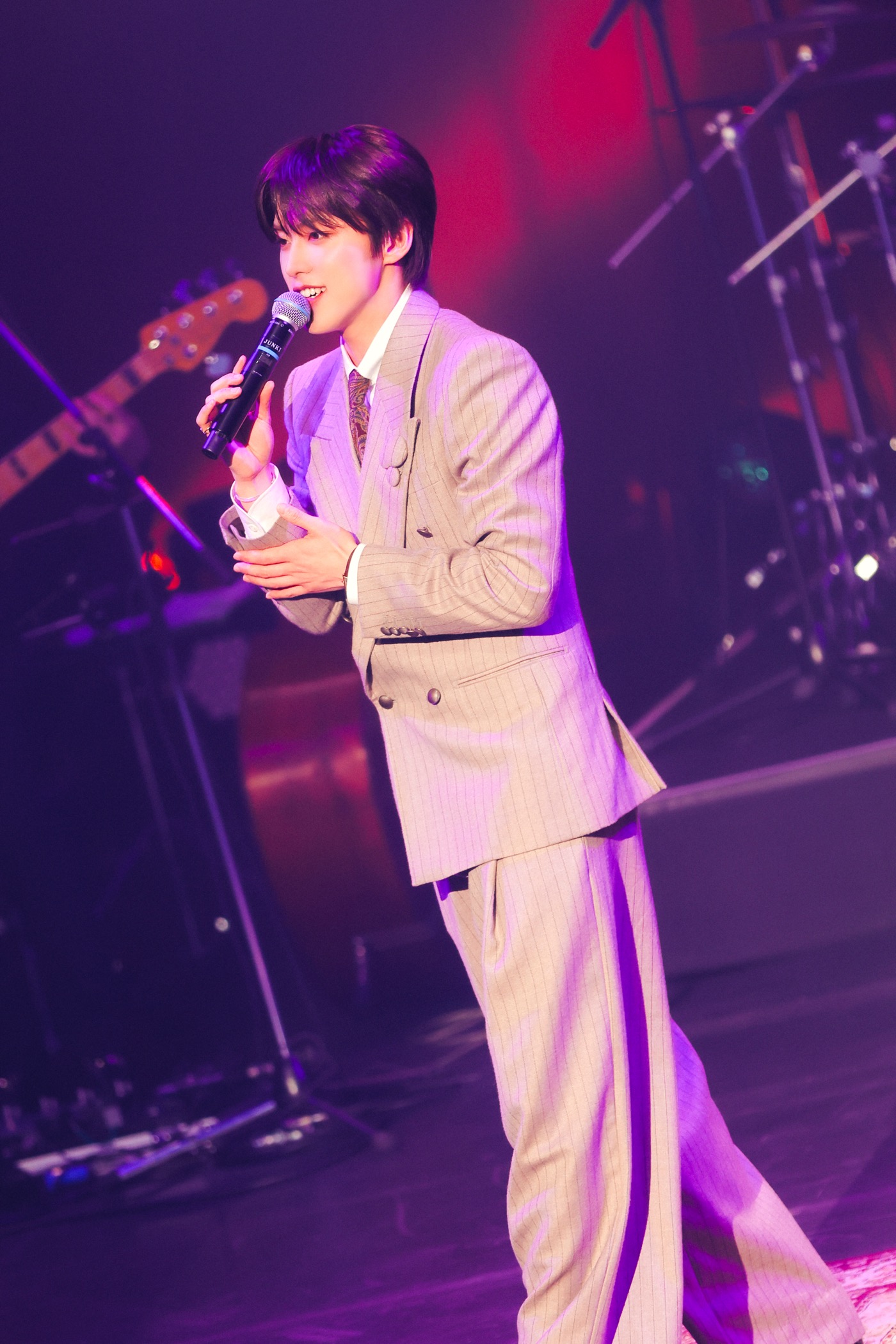 1曲目は、儚く温かいラブソング「napori」(Vaundy)を、キレのあるダンスで冒頭から観客を魅了する。そして「オーディションの時からいつも応援してもらって、夢や目標を叶えさせてもらっているので、今日は僕が皆さんを支えたい」という思いで選曲したという「Funny Bunny」(the pillows)をスタンドマイクで歌い上げた。