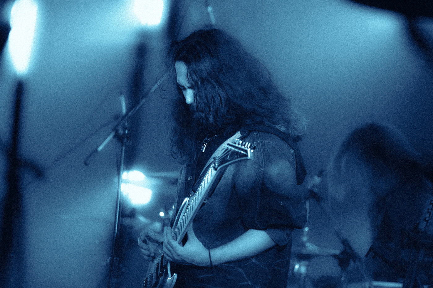 ラスト曲「Addiction」では、塩塚モエカ、ベースの河西ゆりかステージの最前まで行き、激しく体を動かし、髪を振りほどく。