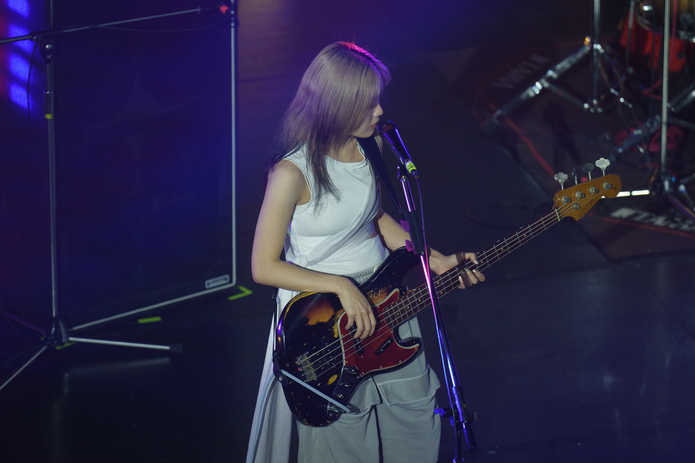 つかの間の休息後、会場SEが止むと、静寂のなか、羊文学が登場。大歓声を浴びながらロックナンバー「FOOL」からライブをスタート。