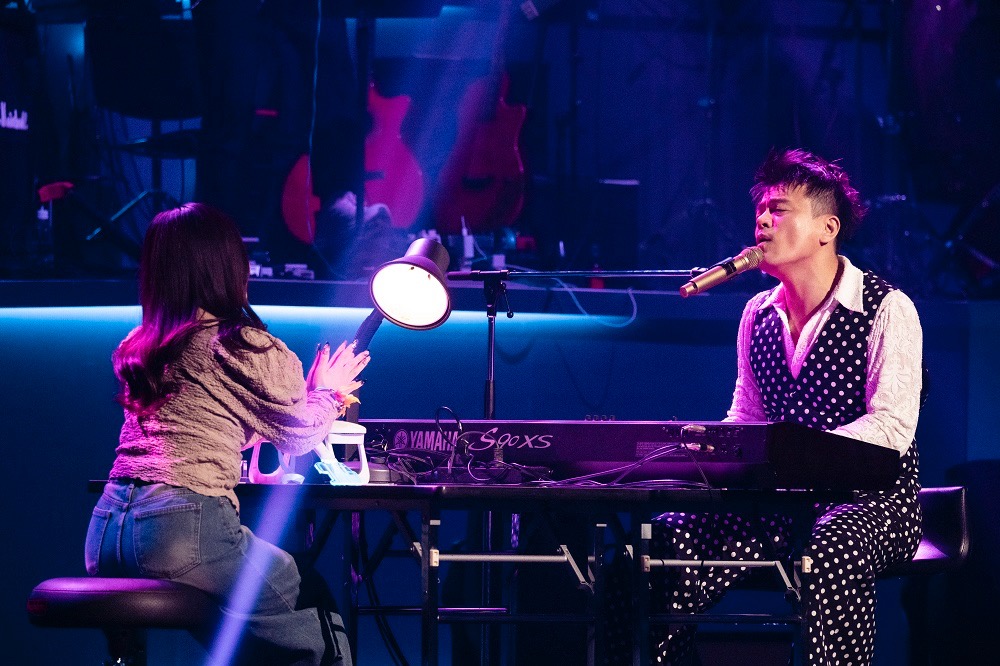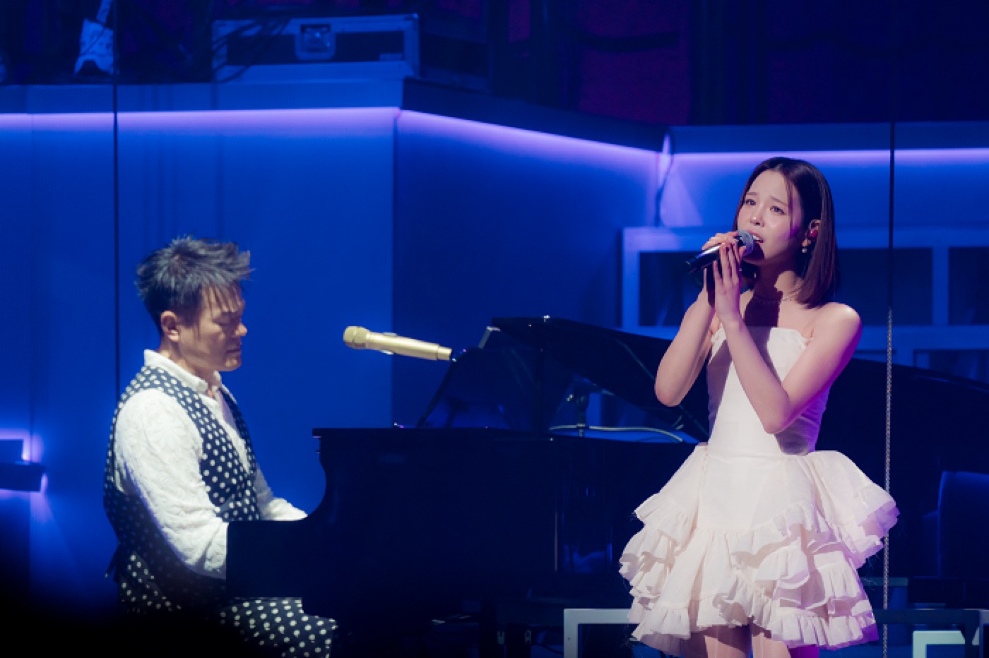 そんな中、今度は “バラードの皇帝” と称される韓国を代表するシンガーソングライターのソン・シギョンが「Feel Special」を歌いながら登場。「生きたレジェンドとこのようにご一緒できて光栄です」と感謝を伝えつつ、「ゲストの役目は主人公を休ませること。時間稼ぎです」「適当に歌って消えます」と軽快なトークで会場を盛り上げる。