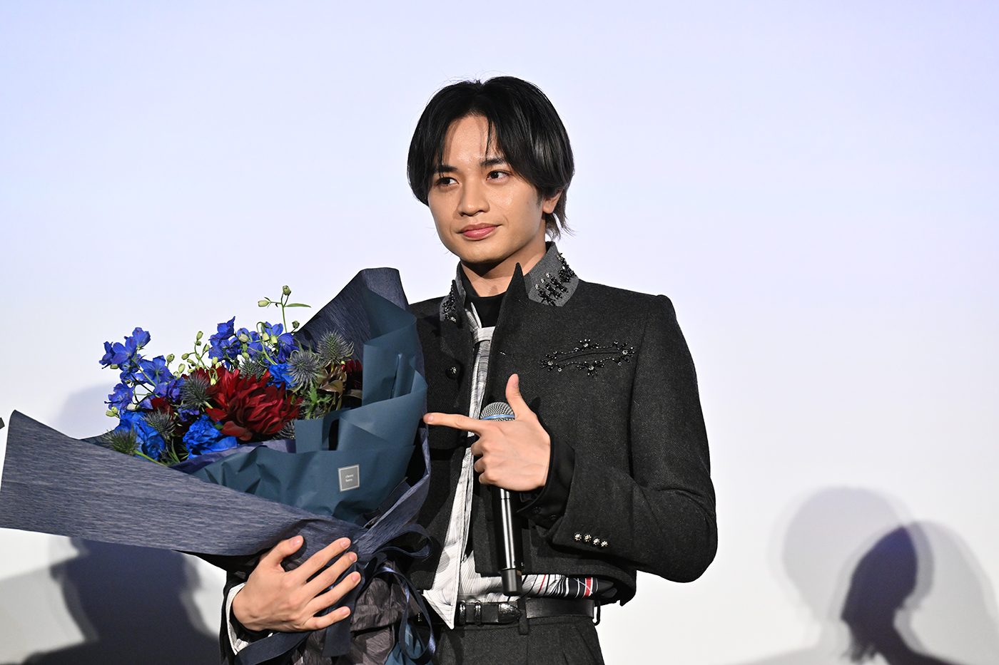 続けて、中島は「キリケンさんは夢がとにかく大きくて、デビューしてからも世界を目指すという意思を何度も聞いて、僕も大きい夢を持つほうなので、日々、共鳴しています」と言葉に力を込めると、桐谷は「公開初日に主演の方からお花をもらうのは初めての経験ですごくうれしいですし、健人、公開おめでとう!」と祝福した。