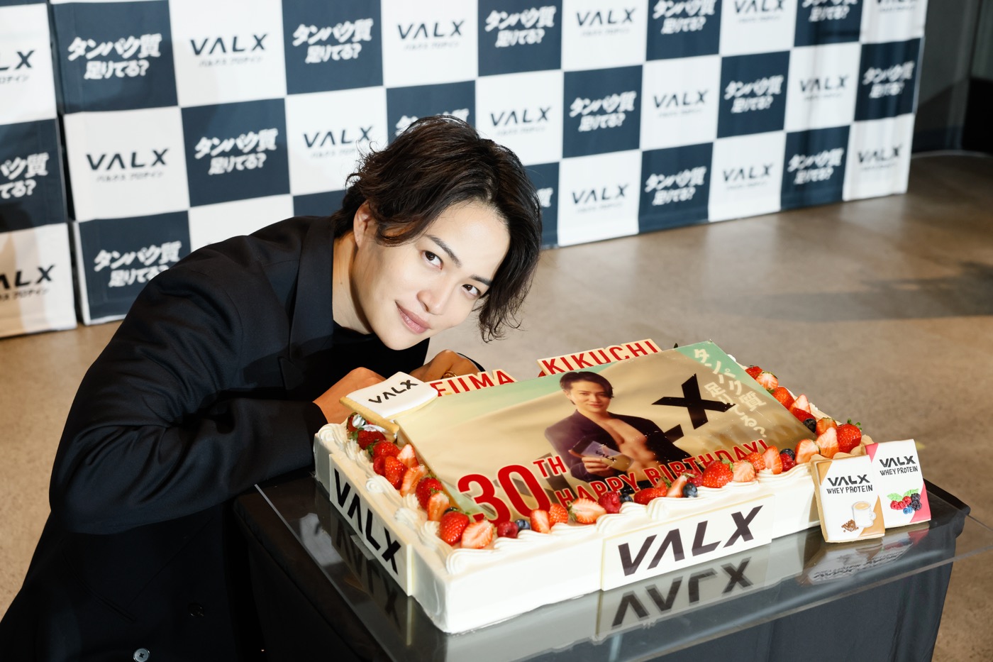 続いて、3月7日に30歳の誕生日を迎える菊池のために、サプライズでプロテインケーキが登場。「30歳の抱負」について尋ねられると「やはりtimeleszです。特にこの一年はスタートの年にしたいなと思います。timeleszにもVALXを飲んでもらって、メンバーもムキムキにしようと思います」と、笑顔で語った。