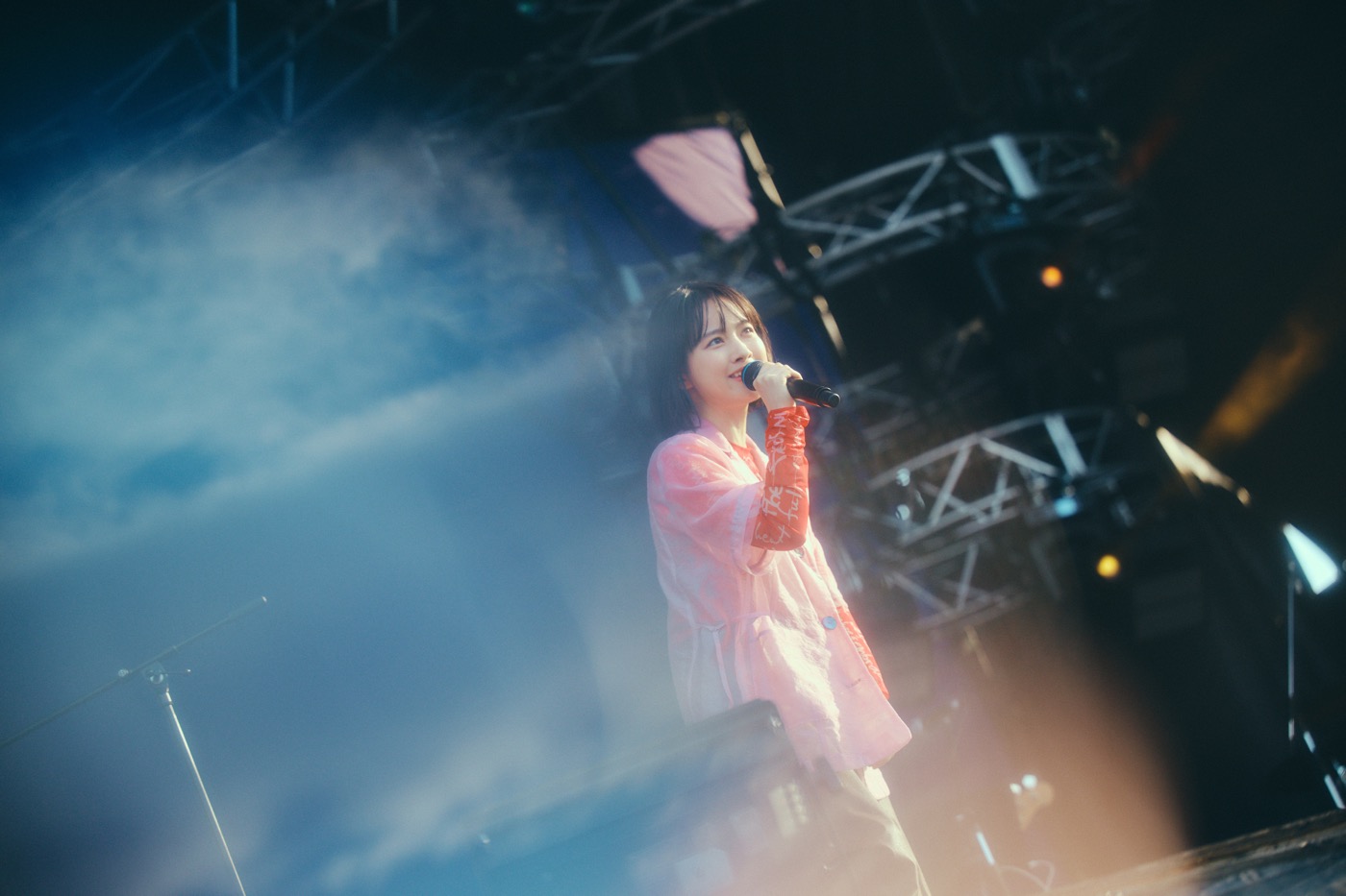 続いての登場は、スペシャルゲストのTOMOO。「Ginger」で軽快にライブをスタートすると、オーディエンスと対話するようにライブを進めていく。アニメ『アオのハコ』のEDテーマとして描き下ろしたエピソードを語り、「空の青、海の青。この雰囲気に似合うな」と鍵盤を奏でてしっとり歌い上げた「コントラスト」や、「私から見えるこの平和な景色にピッタリかも」と軽やかに届けた「Present」とこの日のステージによく映える楽曲たちを披露し、ラストは代表曲「Super Ball」で一体感を生んだ。