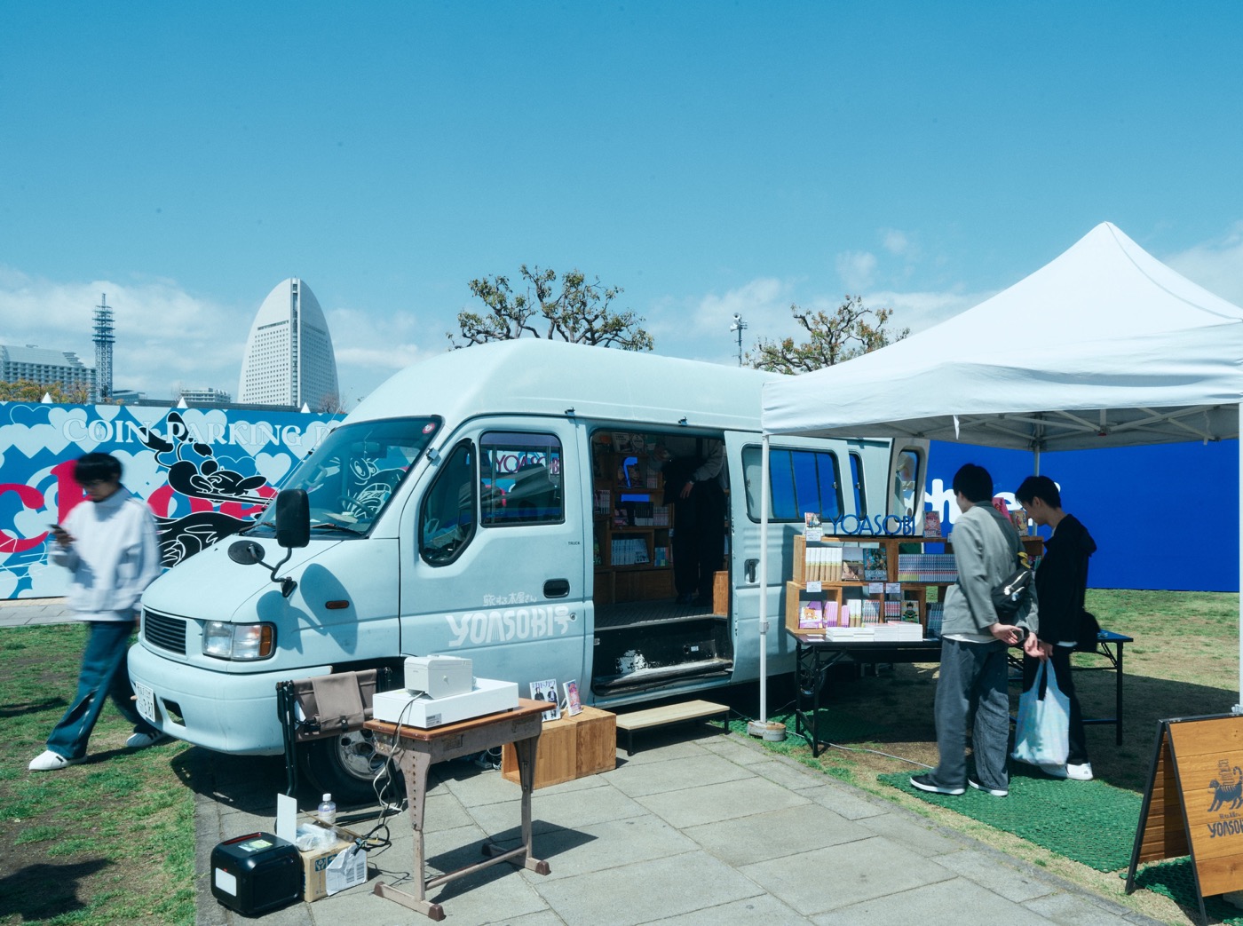 赤レンガ倉庫 赤レンガパーク特設会場では、2024年4月に設立された新レーベル“Echoes”がキュレーションする「Echoes Baa」Day2が開催。5日に続き、YOASOBIを始めとするEchoes所属アーティストを中心とした豪華ラインナップによるライブパフォーマンスに加え、DJフロア、アートウォール、数量限定のEchoesオリジナルグッズを販売する初のポップアップショップ「Echoes Maaket」が出店。さらにYOASOBIと移動式書店・BOOK TRUCKのコラボレーションによる「旅する本屋さん YOASOBI号」や、シルクスクリーン体験やタフティング体験といった、ここでしか参加できないワークショップも出店。集まったオーディエンスが、音楽に限らない新しいエンターテイメント体験を楽しんでいた。
