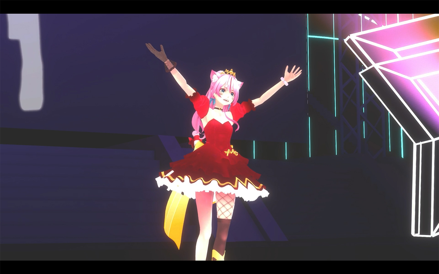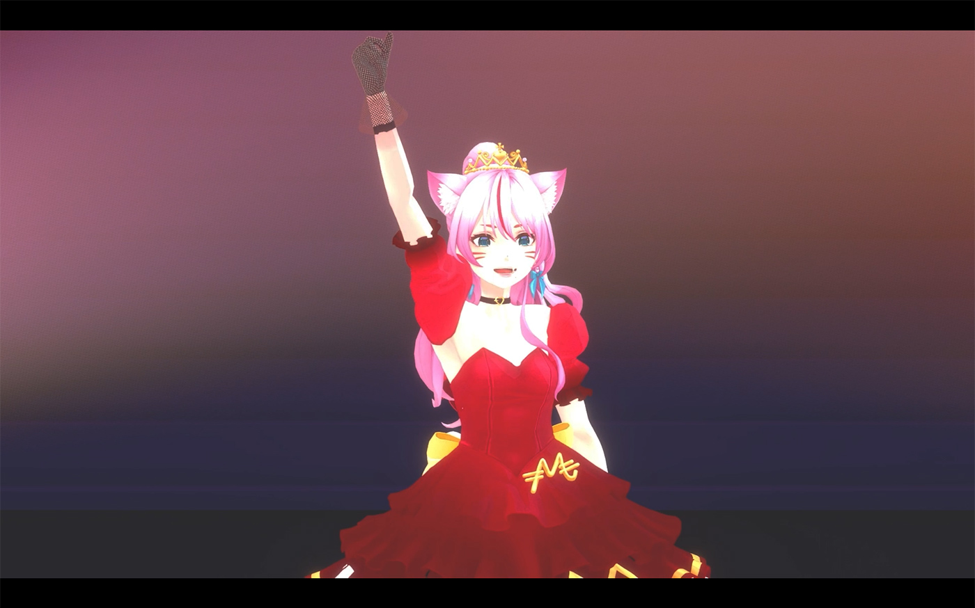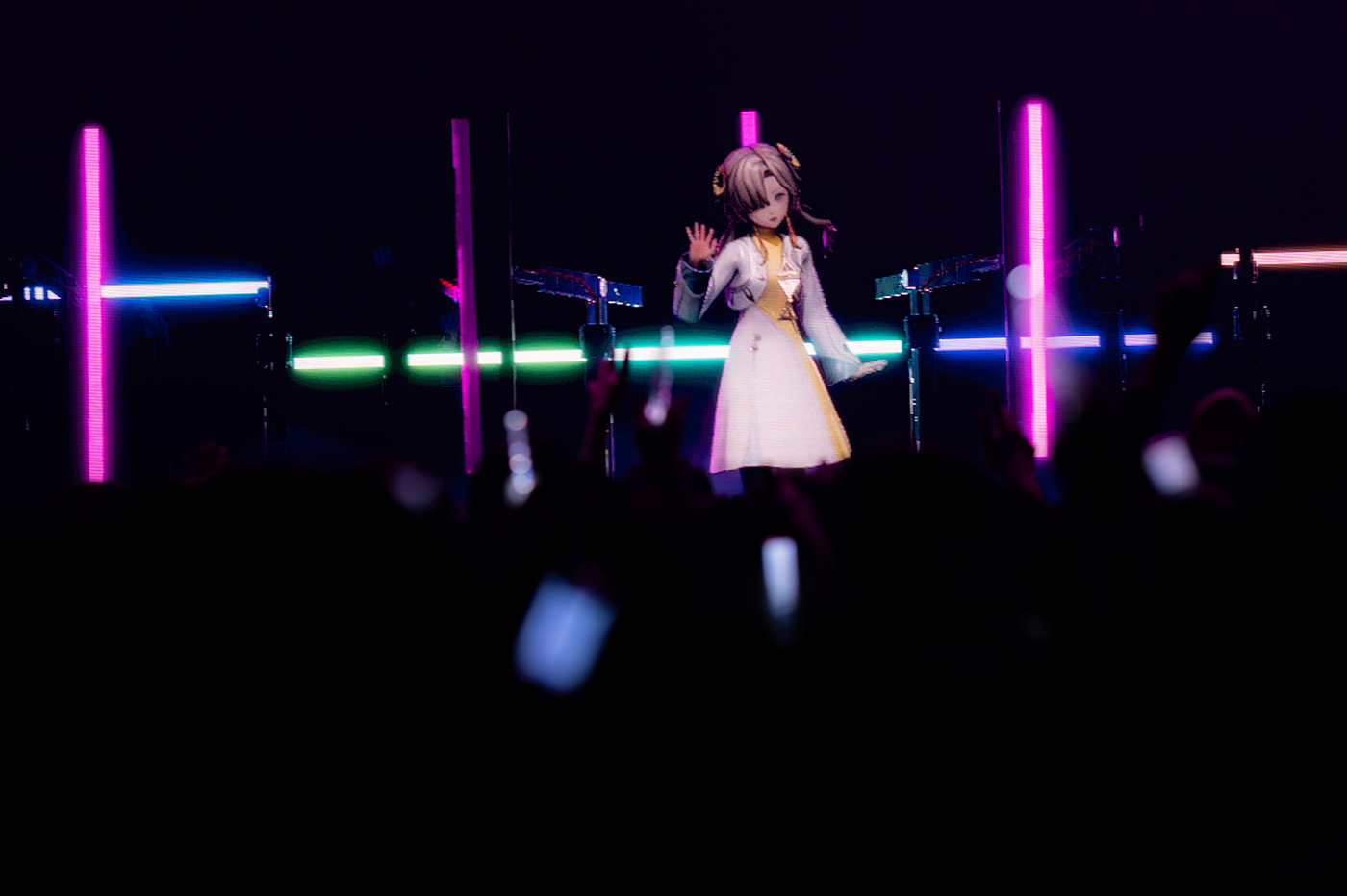 奏みみ(かなで みみ)は「ナニサマ?」の第一声からパワフルな歌声で圧倒。「Crazy Crew」では彼女の歌に合わせて無数のペンライトが上がり、“一体感”という絶景を生成した。