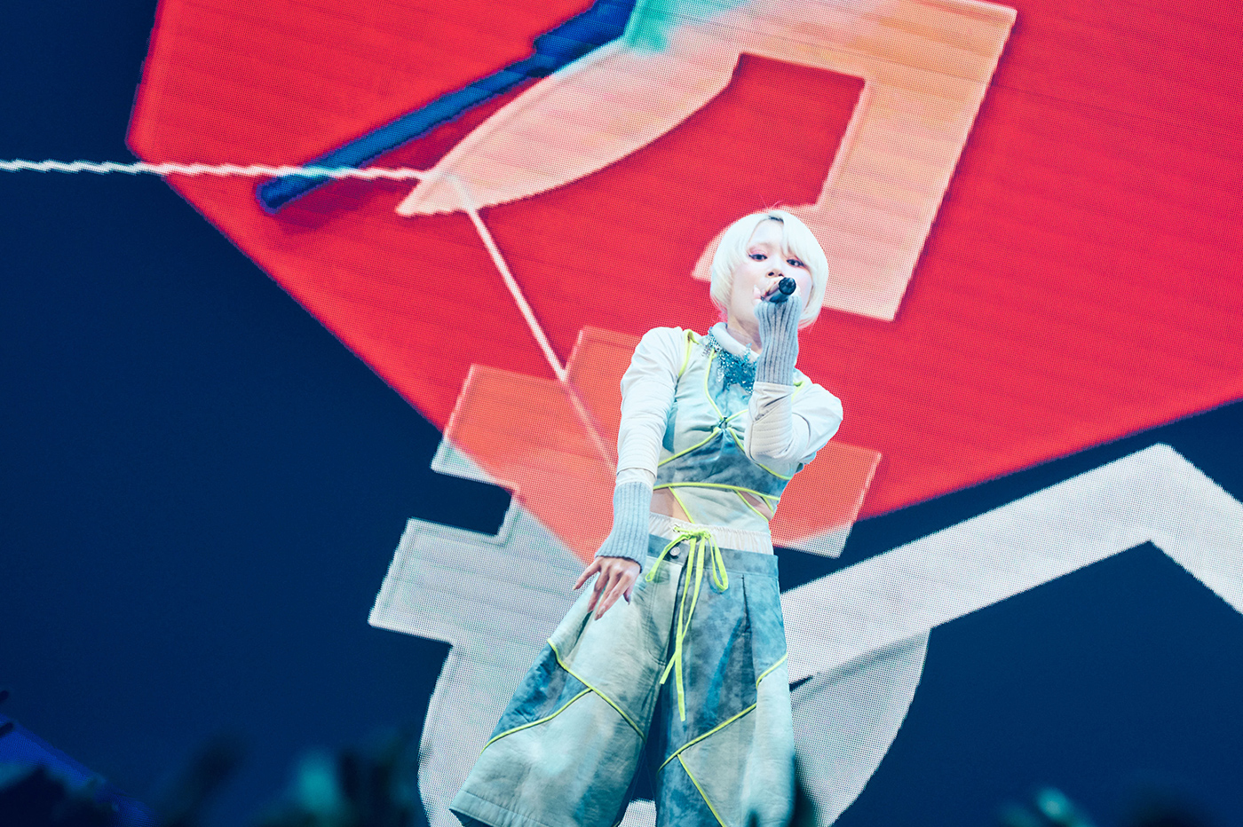 その後も勢いを緩めるどころか、「飛べるよ横浜! もっと飛べるよ!」「めっちゃ良いじゃん!」と積極的に扇動して「煩悩遊戯」「十中八九」で観客の興奮をさらに高めていく。「みんなと歌いたいと思うんですけど、一緒に歌えますか?」と声出しをレクチャーして「Boy」へ。「シンカロン」「ヒビカセ」と何度も沸点を更新し、ラストナンバーは「劣等上等」だ。会場全体がダンスフロアと化して、みんなが恍惚の表情を浮かべて音の渦に酔いしれた。