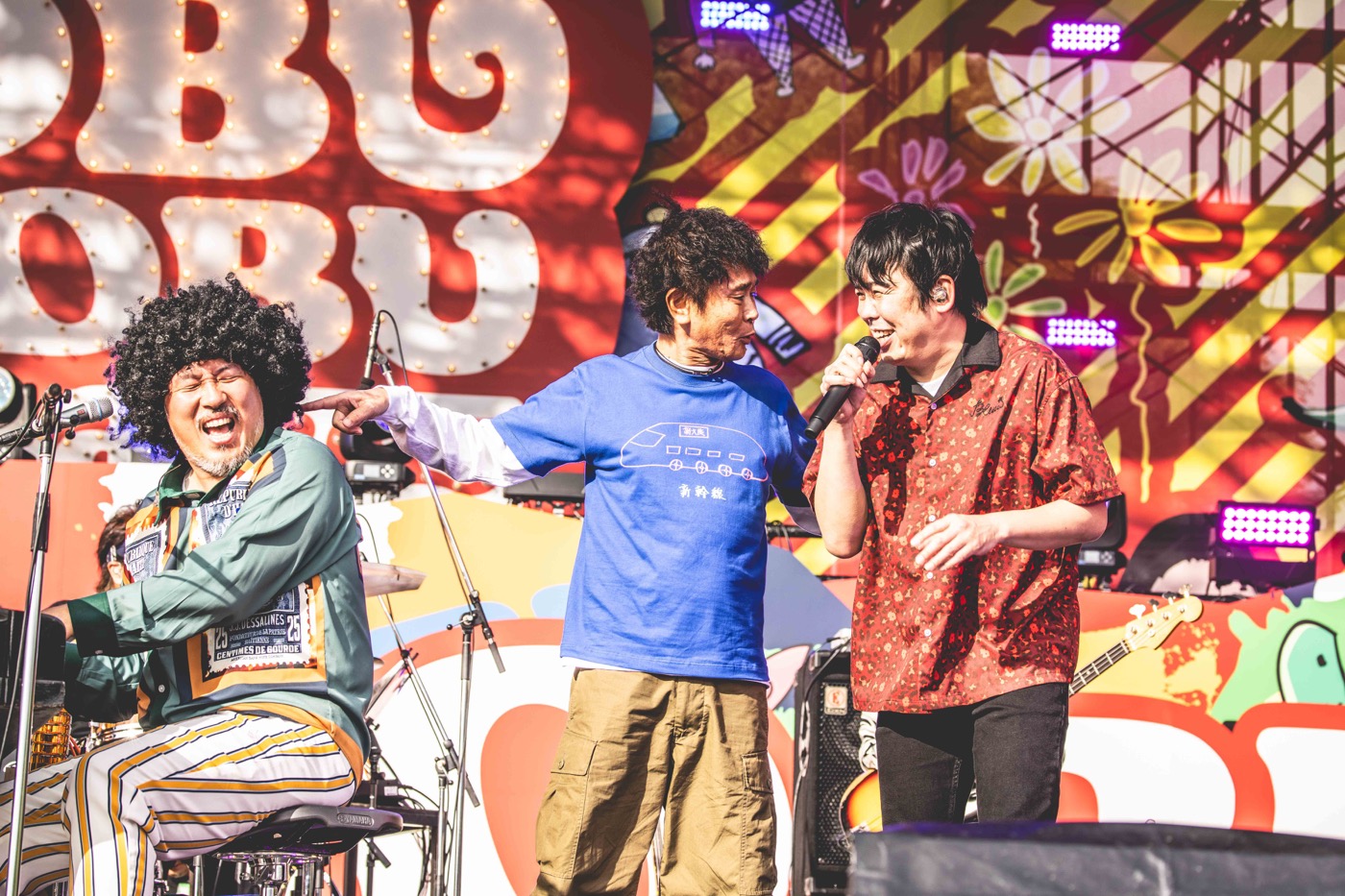 「同じ地元・尼崎の大先輩、浜田さんのフェスにずっと出たいと思っていた」とは数原龍友。初披露となった小森隼プロデュースの新曲「MY GENERATION」は、ASIAN KUNG-FU GENERATION の後藤正文(Vo,Gu)作詞・作曲で「踊れる邦ロック」をテーマに制作に挑んだビートに自ずと体が動き出す。後半戦は「SUMMER TIME LOVE」を皮切りに「AGEHA」や「Y.M.C.A.」と続け、トドメは着ていたTシャツをタオル代わりに振り回した「NOW or NEVER」。底抜けに楽しい全9曲で存分にアピールした。