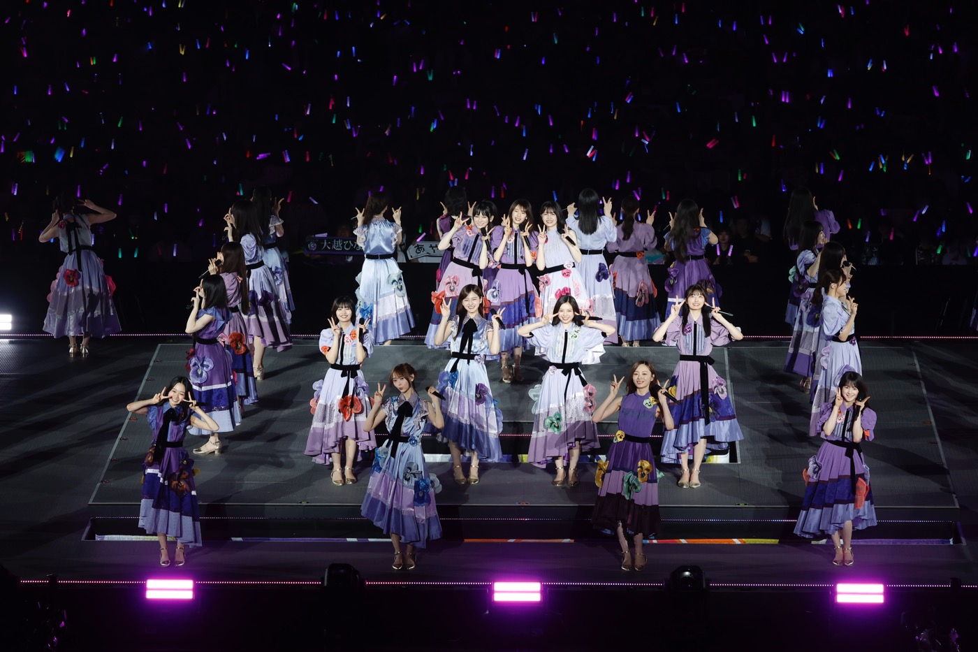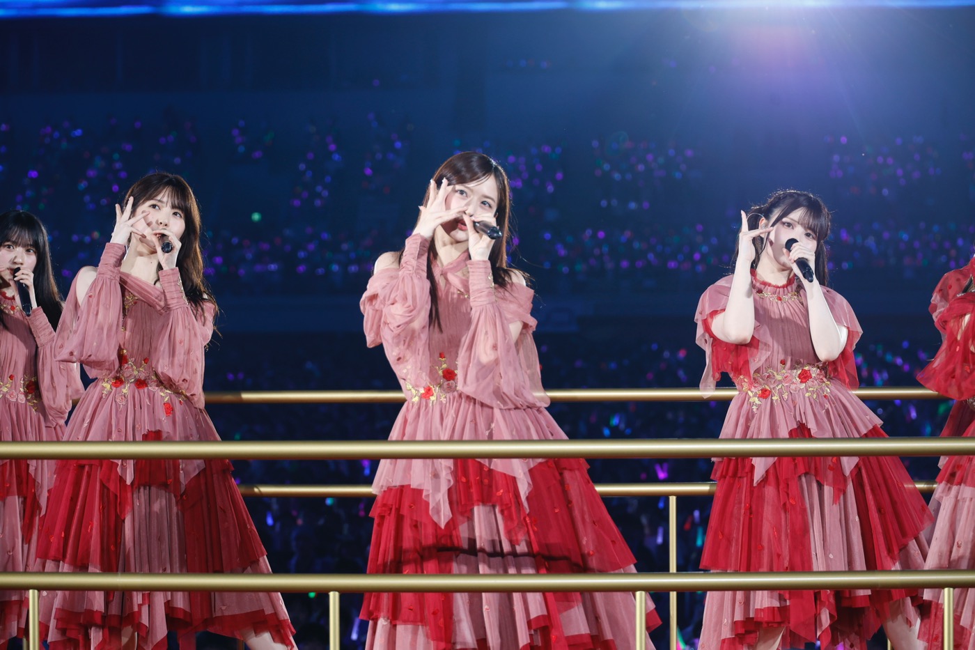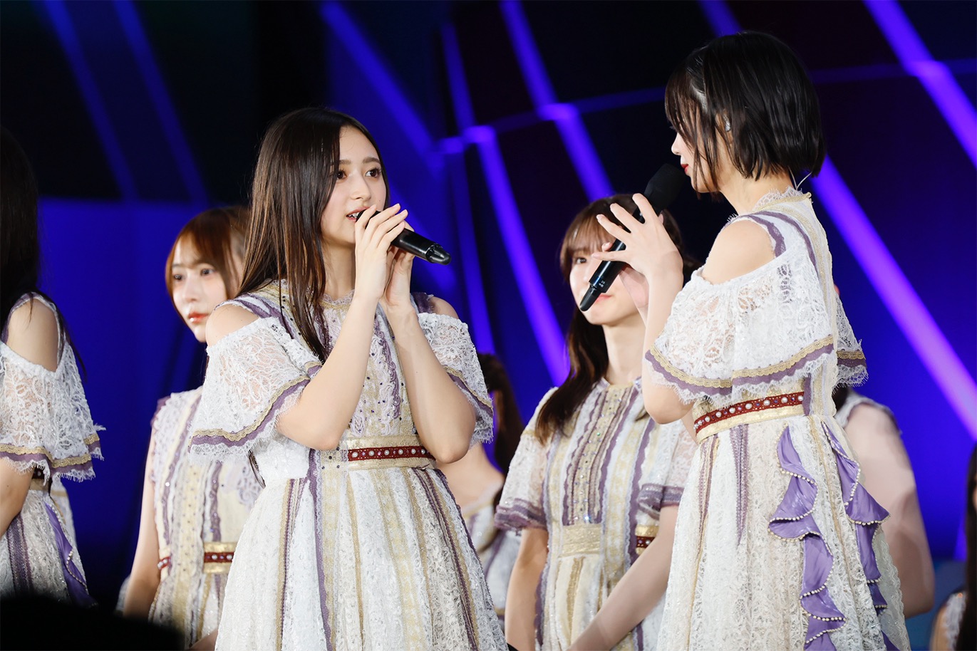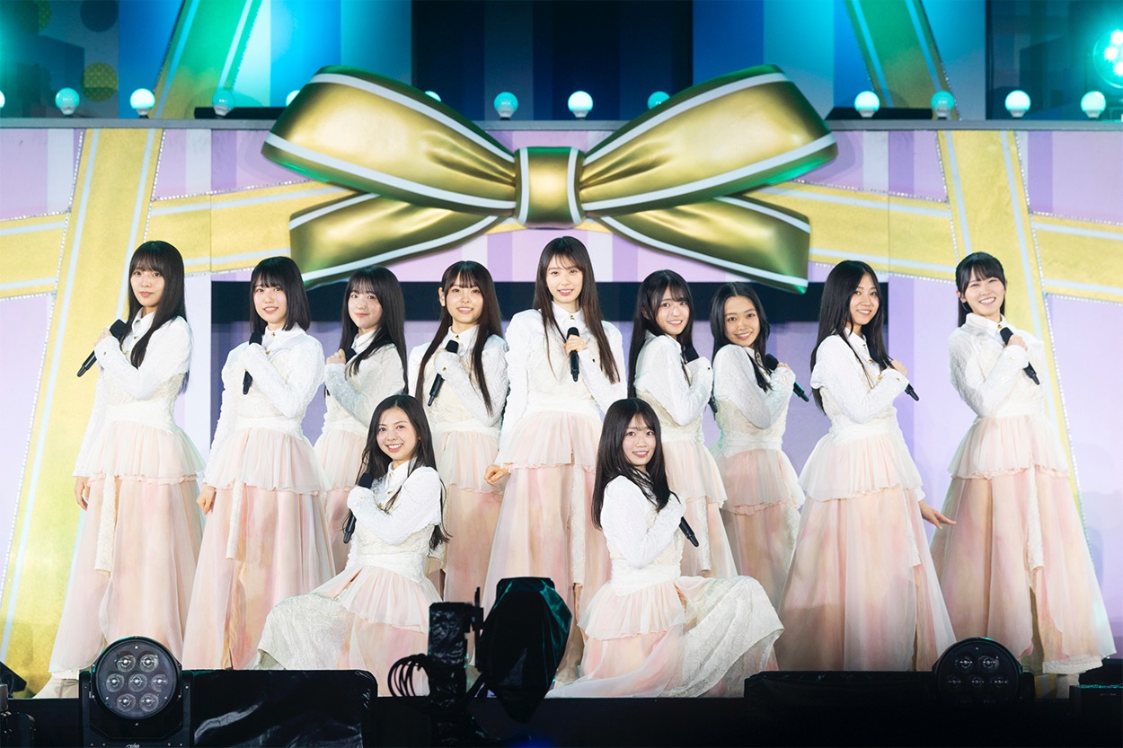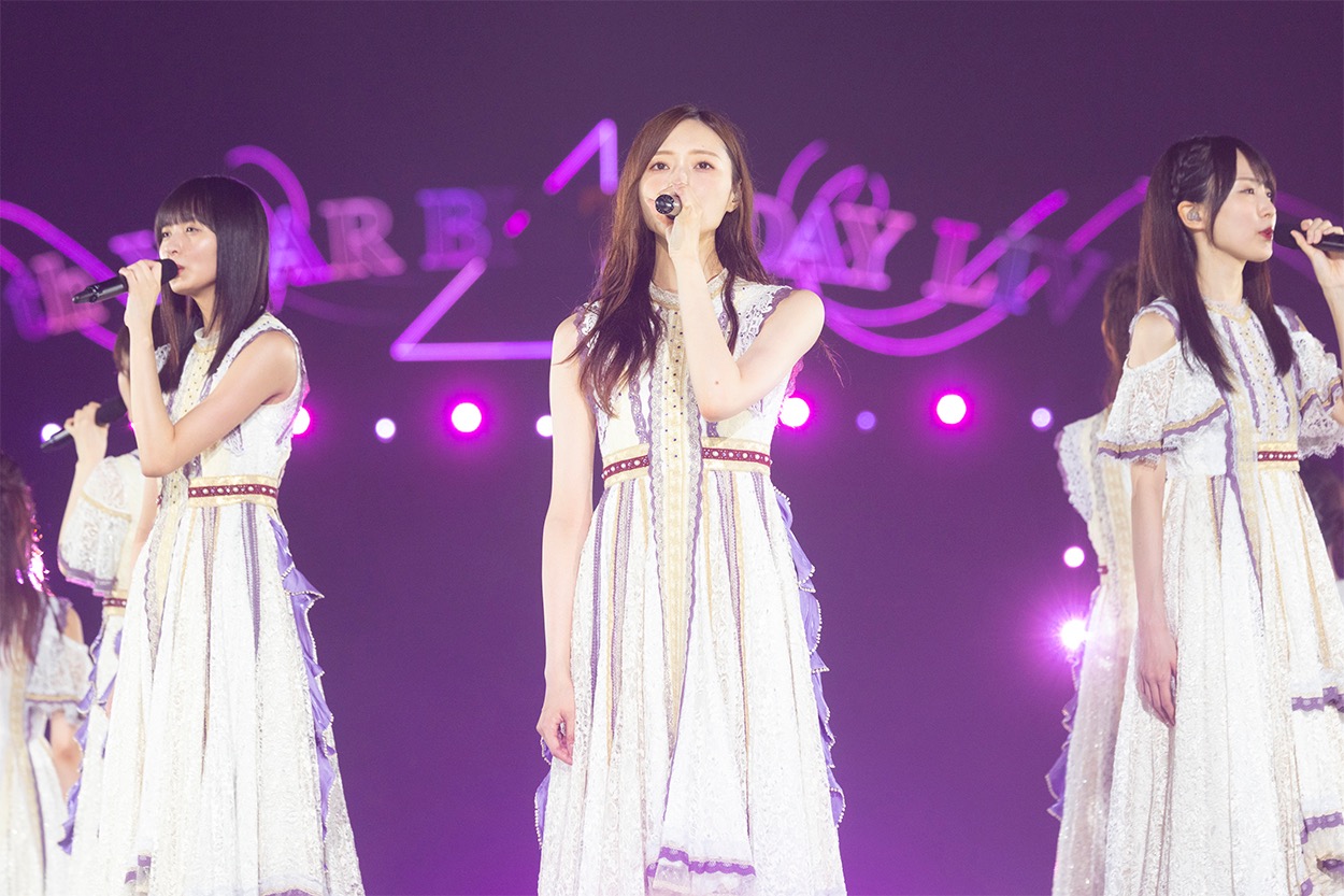 続いて5期生が「バンドエイド剥がすような別れ方」、4期生が「ジャンピングジョーカーフラッシュ」で、会場の熱量をさらに引き上げると、3期生が「三番目の風」でその熱気をさらにヒートアップさせる。そして、「設定温度」で3期生から6期生までのこの日のライブ参加メンバー39名がついに勢揃い。1期生が結成当初から紡いできた歴史をしっかりつないでいることが伝わる、感動的な歌とパフォーマンスでオーディエンスを歓喜させた。