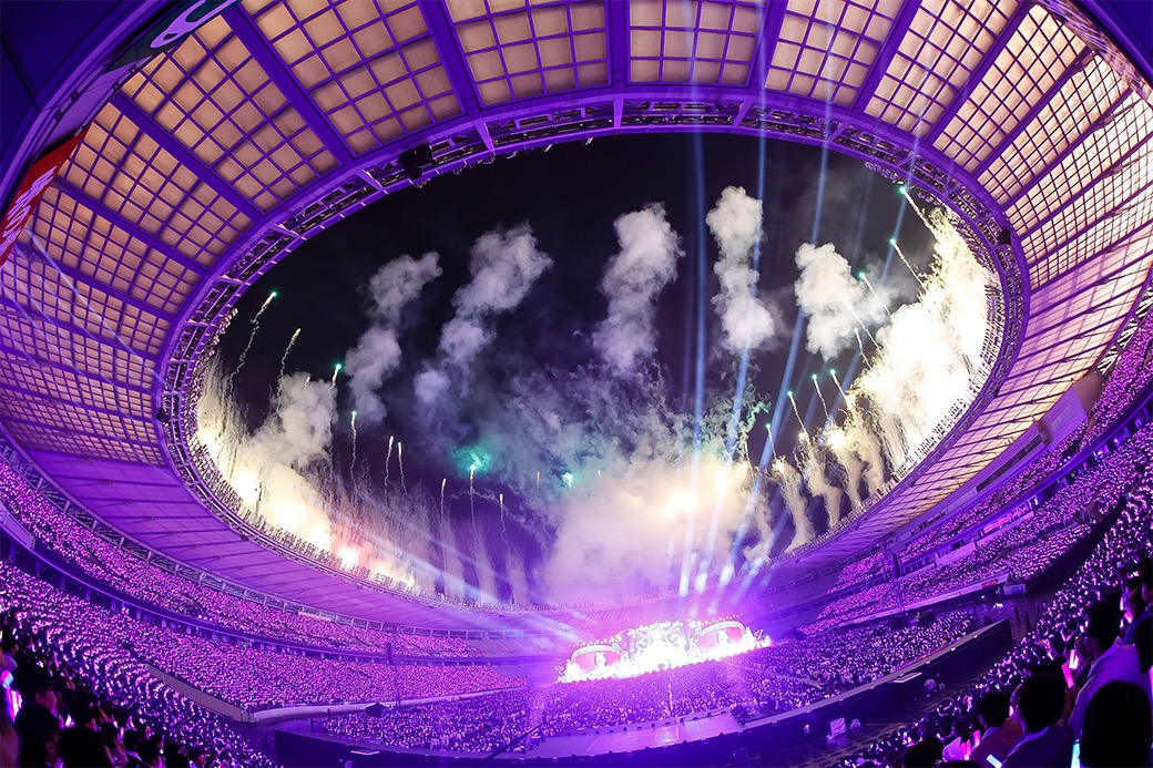 事前の天気予報では雨が懸念された2日間だったが、ここ数年の明治神宮野球場公演同様に現メンバーの“晴れ女”ぶりを遺憾なく発揮。DAY2の18日公演は若干の蒸し暑さと涼しい風が混じり合う中、バースデーライブにふさわしくカラーガード隊を従えた壮大な演出でライブは幕を開ける。