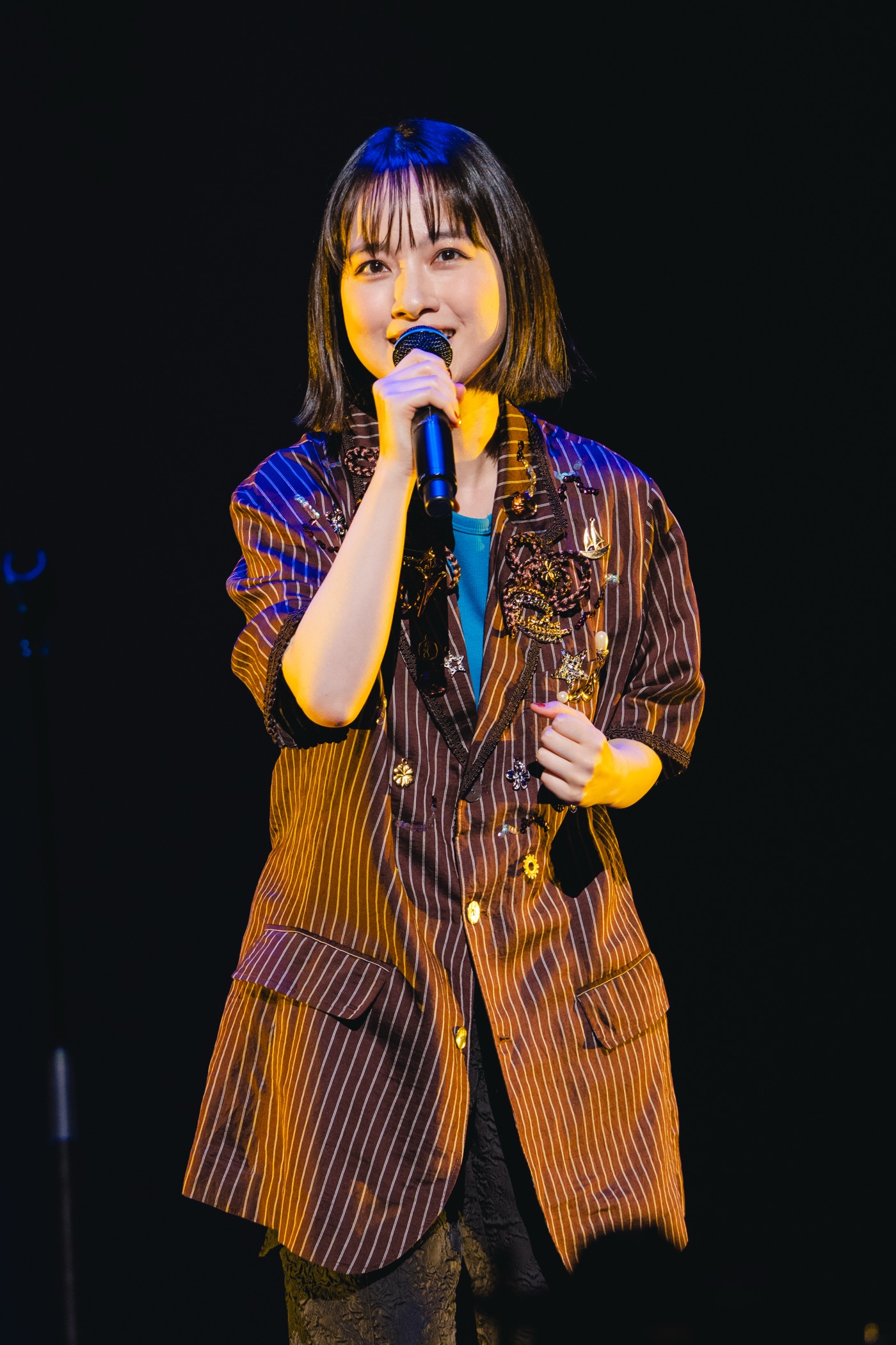 仲宗根:みなさんライブで元々こういう格好をしている方もいらっしゃるじゃないですか。私はこれよりもTシャツにパンツの方が歌いやすいので、すごい不思議な感じではありますが、今日はこんな感じで歌わせてもらいます。Q. 衣装を着てテンションは上がりますか?