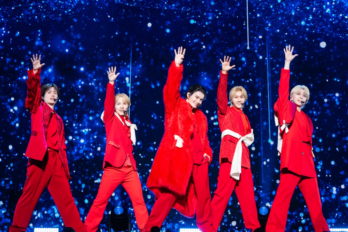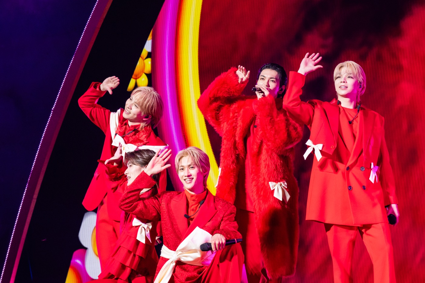 続くM!LKはアーティストラウンジでのミルキーベージュカラーから一転、紅白のめでたい衣装に身を包み、この日リリースされたばかりの新曲「wan」や、キャッチーなダンスを交えた「イイじゃん」でオーディエンスを沸かせた。