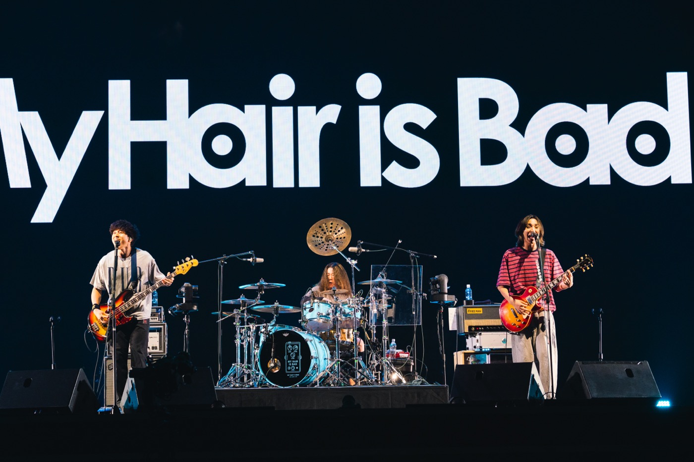 「ロックバンドやりに来ました!」という言葉どおり、この日のラインナップのなかで異彩を放つソリッドなバンドサウンドでロックバンドのかっこよさを見せつけたのはMy Hair is Bad。フロントマンの椎木知仁はかつて「『サママ・フェスティバル!』を聴いて『こんなに戦う気満々のバンドがいるんだ』と思った」とミセスに衝撃を受けたことを明かしていたが、この日のマイヘアこそ、文字どおり「戦う気満々」だった。