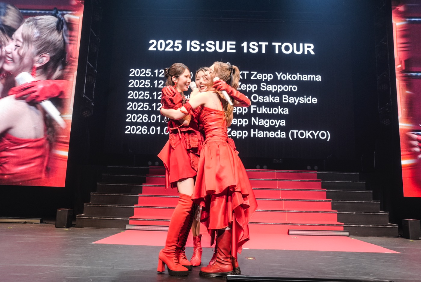 IS:SUE初となる全国ツアー『2025 IS:SUE 1ST TOUR』は神奈川、北海道、大阪、福岡、愛知、東京をめぐる全6公演で、12月6日 KT Zepp Yokohamaを皮切りにスタートする。チケット最速先行予約は、IS:SUE OFFICIAL FANCLUBにて6月20日正午より開始。持ち前のパワフルなパフォーマンスに定評がある彼女たちが、さらにパワーアップして全国各地のフロアを沸かせることは間違いなし!またIS:SUEはこの夏、『KCON LA 2025』での初の海外公演や、『Lucky Fes’25』『ROCK IN JAPAN FES. 2025』といった国内大型夏フェスにも登場を予定しており、ますます勢いを増す活躍ぶりにさらに期待が膨らむ。