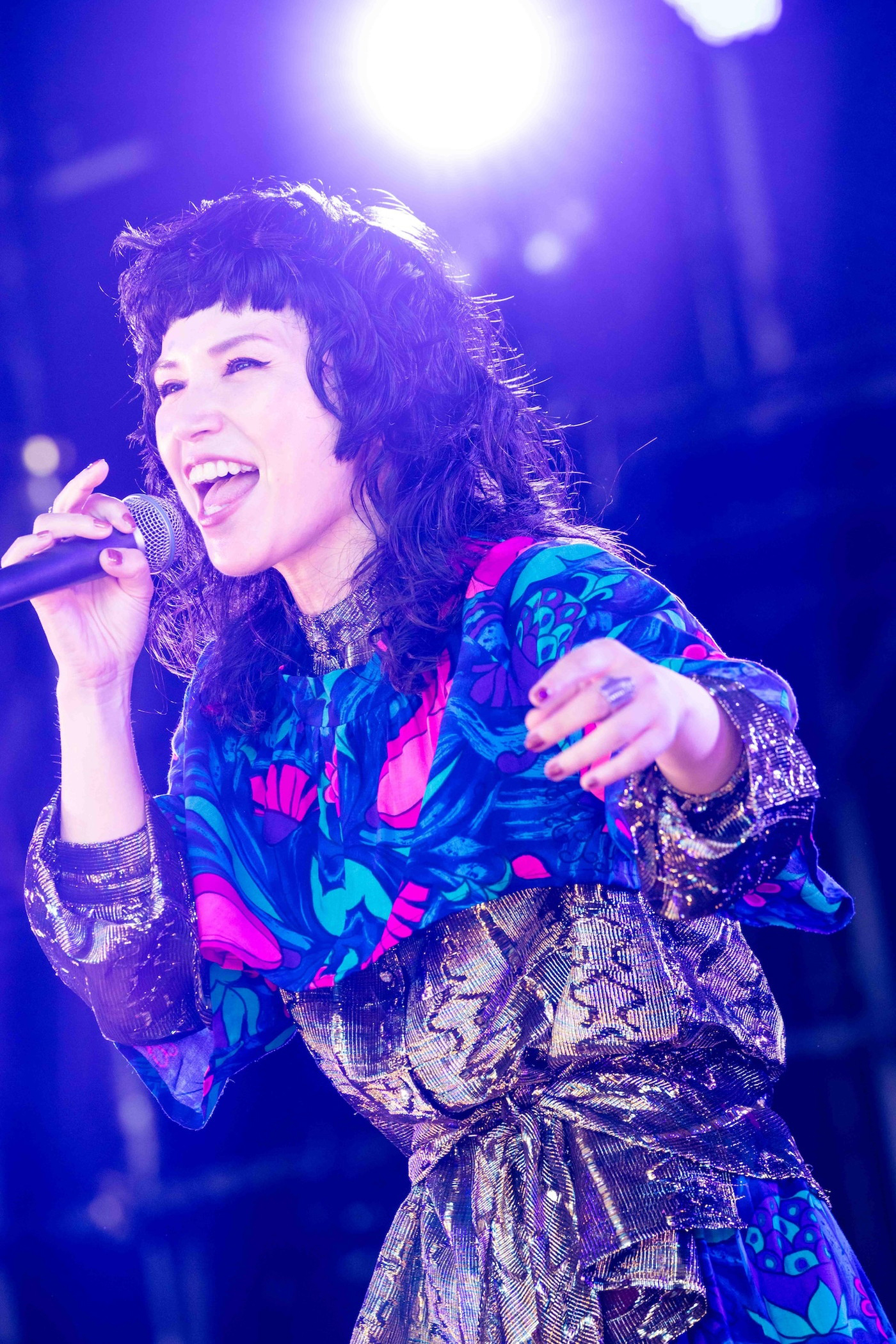 たくさんの歓声と拍手に迎えられステージに現れたSuperflyはこの日、照り付ける太陽に負けないくらいのブルーにビビッドなピンクカラーの花が散りばめられた鮮やかな衣装で登場。芝生広場いっぱいに集まった観客を前にうれしさはもちろん、「おぉ!」と驚きの表情を見せつつ、「Superflyです。ありがとう!」と、1曲目「Wherever you are(ONE OK ROCK)」へ。柔らかく、しなやかな彼女の歌声が響いた瞬間、会場の空気は一変。愛おしさに満ちた楽曲を、改めて自身の歌声で紡ぎ、言葉を届ける彼女の姿に観客の誰もが目が離せないでいる。この日のバンドメンバーはツアーでもおなじみの面々ばかり。卓越したバンドサウンド、コーラスが彼女の歌声をよりいっそう大きな存在感に築き上げていく。