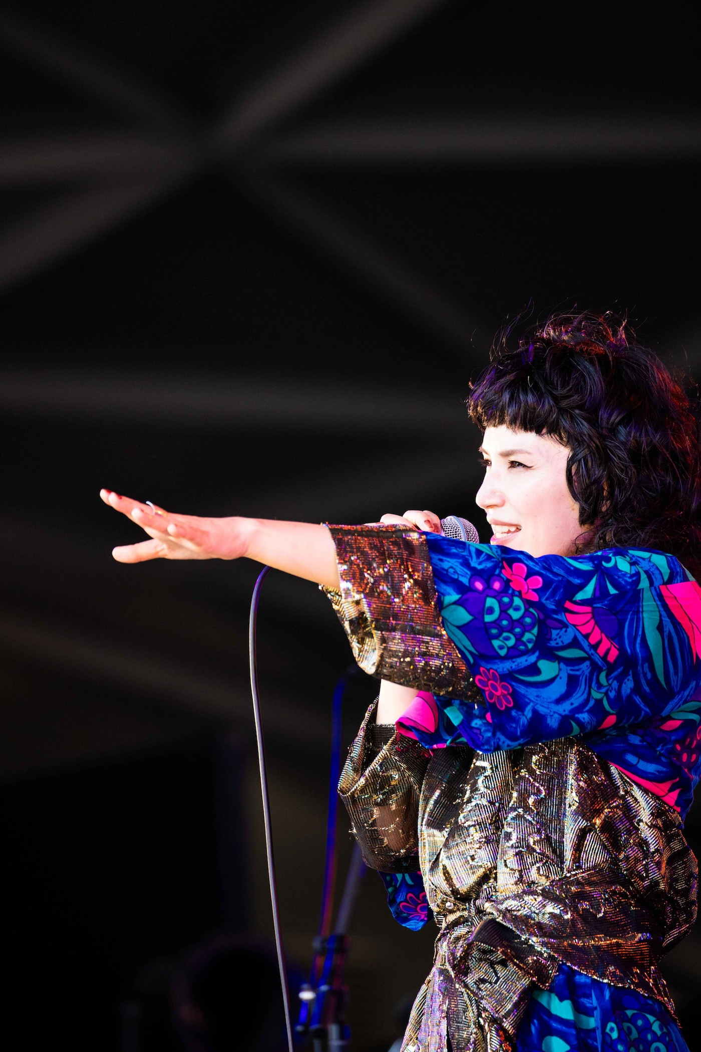「最高!!」と、満面の笑みで叫ぶ彼女だが、ステージには屋根があっても野外ステージということもあり、うだるような暑さは変わらず。ライブ中も汗が次から次に流れ出てくるようで、「みんな強い!」と、観客のタフさに感服するひと幕も。「ここで少しゆったりとした曲を歌います…」と披露したのは「メロディ―(玉置浩二)」。珠玉の名曲の魅力はそのままに新たな命を吹き込むように、凜とした歌声で言葉のひとつひとつに魂を込め、力強いロングトーンで歌い上げる。彼女の歌声に心癒やされるなか、緑に溢れた会場には時折涼しい風が吹き込み、観客の表情も和らいでいるようだ。