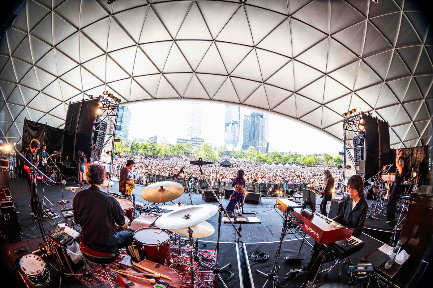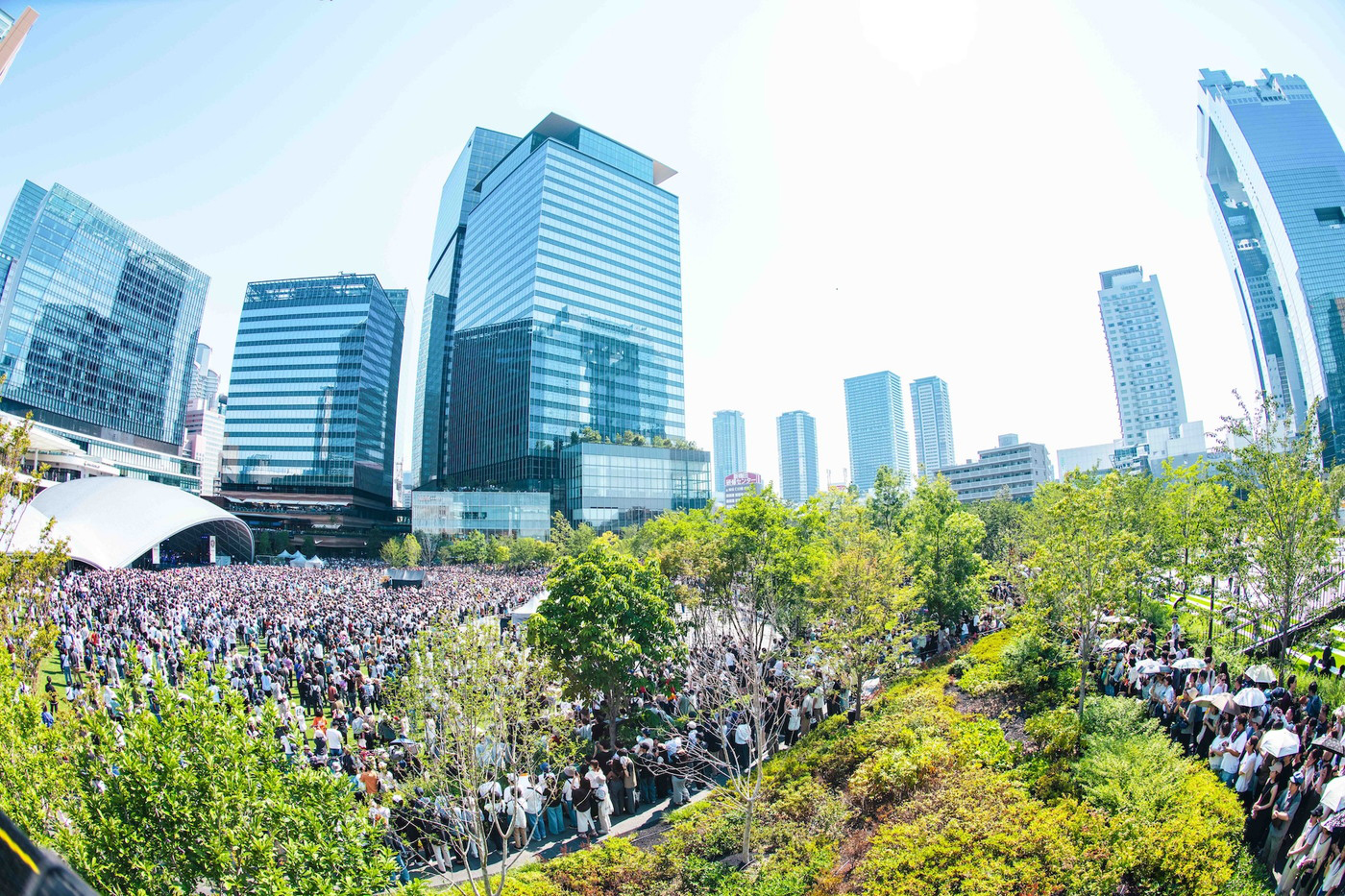 実は2023年、アルバム『Heat Wave』のリリース時に同エリアでフリーライブを開催予定だったが、喉の不調により残念ながら中止に。今回はリベンジ開催ということもあり、会場には早くからたくさんのファンが集まり、会場は大賑わい。これまでにも音楽ライブはもちろん、数多くのイベントが展開されてきたが、これほどに会場を埋め尽くすほどの観客が集まる大規模なイベントの開催はこの日が初めて。