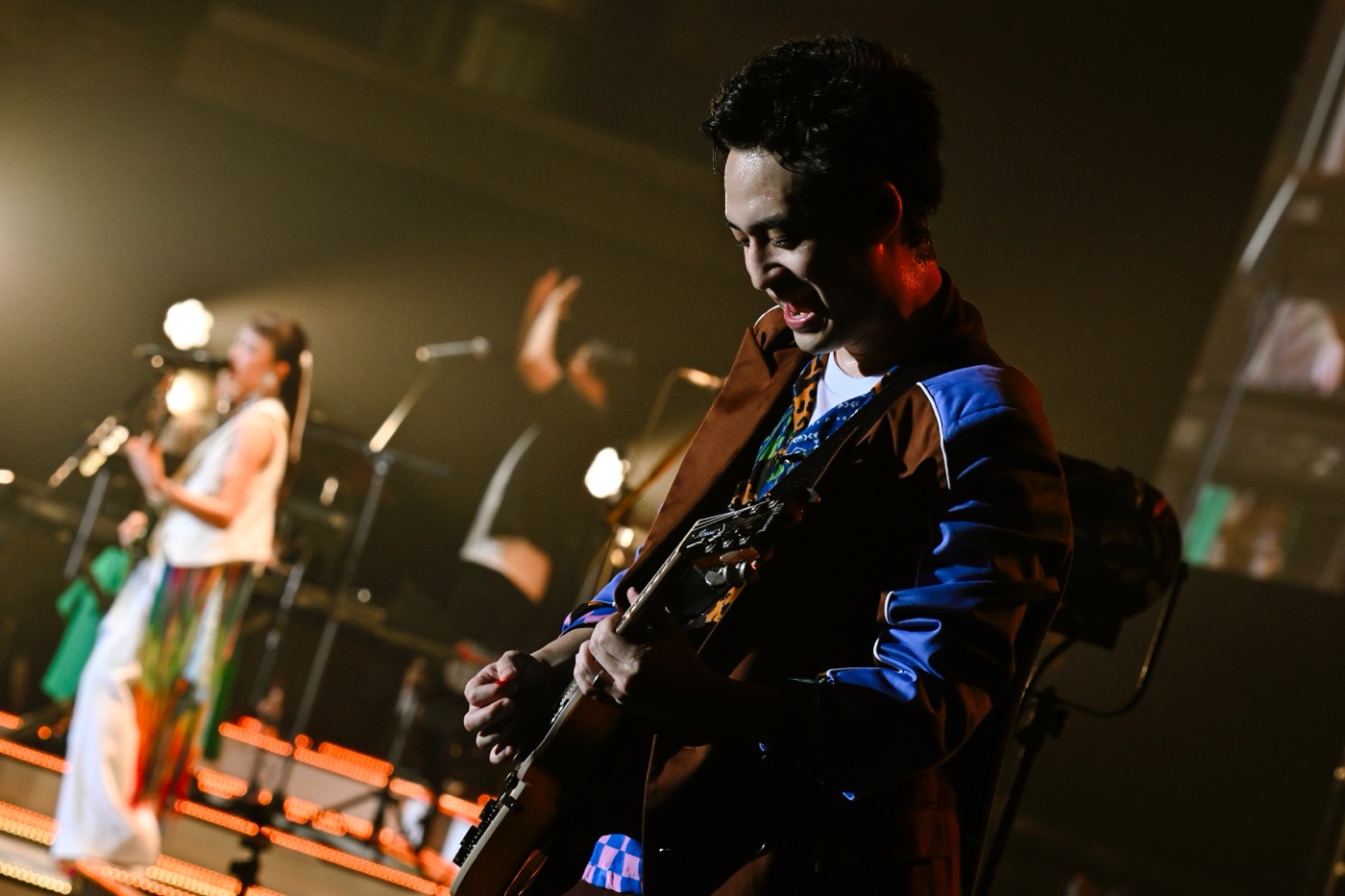 穴見のファンキーなベースラインから流れ込んだ「馬鹿の一つ覚え」「Monkey Dance」、peppeのピアノと小林のエモーショナルなソロプレイがセンチメントを掻き立てる「マジックアワー」、コーラス隊との共鳴によってゴスペル的な重厚な響きを得た「僕らはいきものだから」など、セットリストの要所要所に『Channel U』収録曲を配していたこの日のアクト。加えて、ライブ中盤には、バンドにとっての初音源となるミニアルバム『Nice To Meet You??』(2017年)からの「Bitter」から、2024年の配信シングル曲「ナイスアイディア!」まで、時系列順にメドレーで駆け抜けてみせた。自身の個性を全方位的に咲き誇らせながら国民的バンドへと成長してきた13年の歩みが、スリリングなほどに目映い名場面として展開されていった。