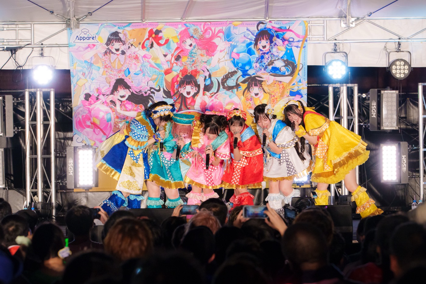 6人組アイドルグループのAppare!が、7月9日に神奈川・横浜赤レンガ倉庫 野外ステージで『Appare!9周年ワンマンライブ〜9年目のありがとう。ここから、もっと〜』を開催した。