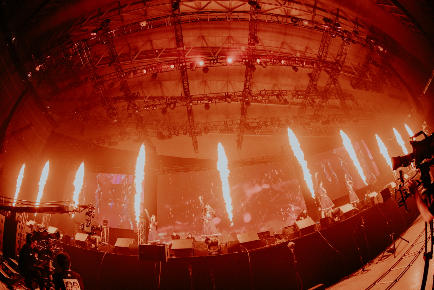 KANONは、「10年前の今日、初ライブを行いました。小さなテントで、お客さんも50人いるかいないかくらいで初ライブをしました。なのに今日は10年経ってこんなに沢山の人たちが集まってくれて、私たち本当に嬉しいです!」と幕張メッセに集まったファンに向けて感謝の気持ちを伝えつつ、結成当初を振り返るシーンも。その後は彼女達の活動の中でも、特にターニングポイントとなった2021年の世界進出時の楽曲「Pineapple Kryptonite」をRemixバージョンと共にパフォーマンス。