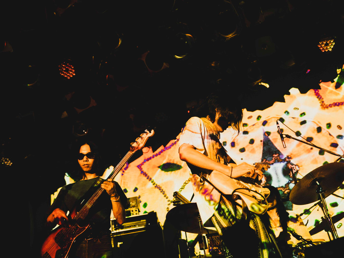 『AWAI vol.2』のゲストとして登場したのは、事前にHedigan’sが「意識と無意識のコミュニケーションを誘発するにいちばんふさわしい音楽を奏でてくれるバンド」と紹介した、5人組サイケデリックバンド・HAPPY。