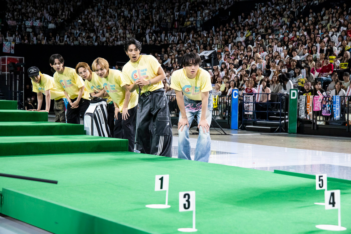 6つ目の種目は、階段が7段になったセットでパターゴルフ対決を行う「シューティング段々パターゴルフ!」。カップの大きさによってポイントが異なり、チャンスは1人1球のみ。