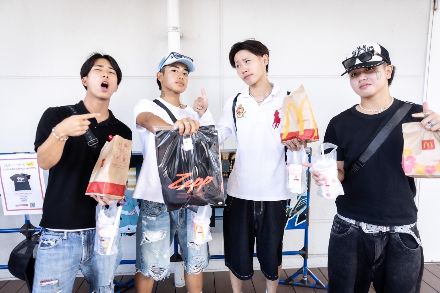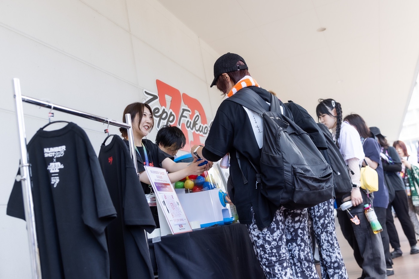 7月19日・20日・21日の3日間、九州全土はもちろん中国地方からも音楽好きが集結する『NUMBER SHOT2025』が開催された。ZEPP APPAREL「ZPZP」はEX STAGE会場でもあるZepp Fukuoka外の2階デッキでインスタフォロワー獲得ガチャキャンペーン、会場内ではZPZP×NUMBER SHOTのコラボグッズ、ZPZPオリジナルデザイングッズの販売を展開。フェス初日は、この日を楽しみにしていたファンたちが朝から続々とメイン会場のみずほPayPayドーム福岡へ。インスタキャンペーンの声がけに、ノリのいい博多っ子が「せっかくやけん、やろうや~」と足を止め、大当たりのZPZPブランドオリジナル商品の「ZeppロゴTシャツ」を狙ってガチャに挑戦。Tシャツはもちろん、参加賞のZPZPオリジナルステッカーもかわいい! と大好評で、仲間や家族でガチャを回して「お揃いのステッカーったい!」と笑顔を交わし合いテンションを上げて、目当てのライブ会場へ向かう姿があちこちで見られた。