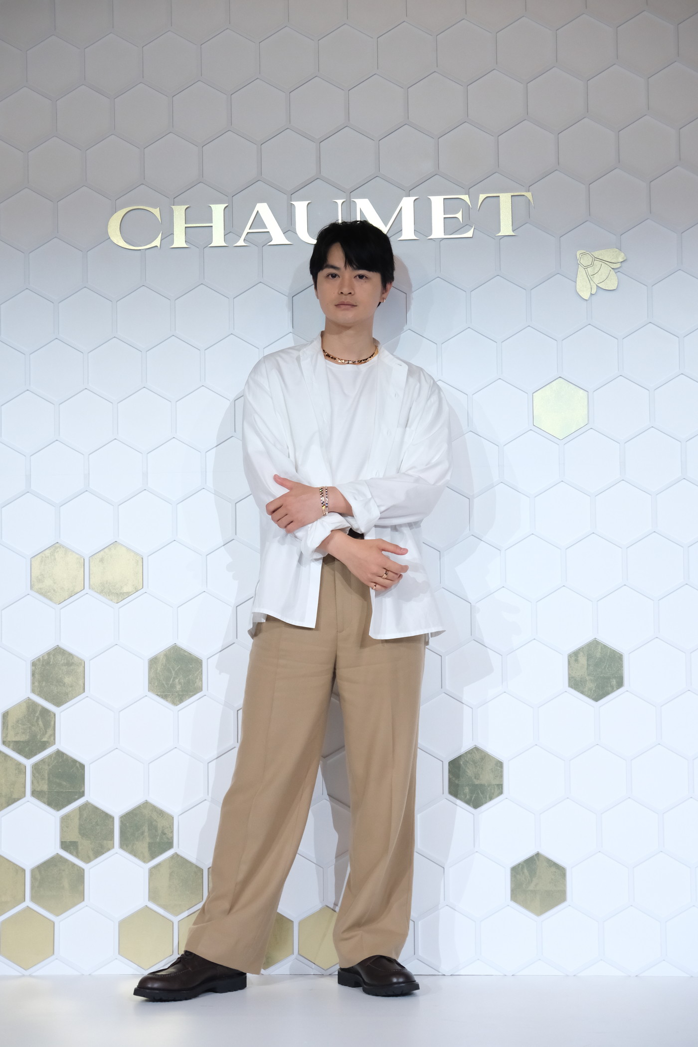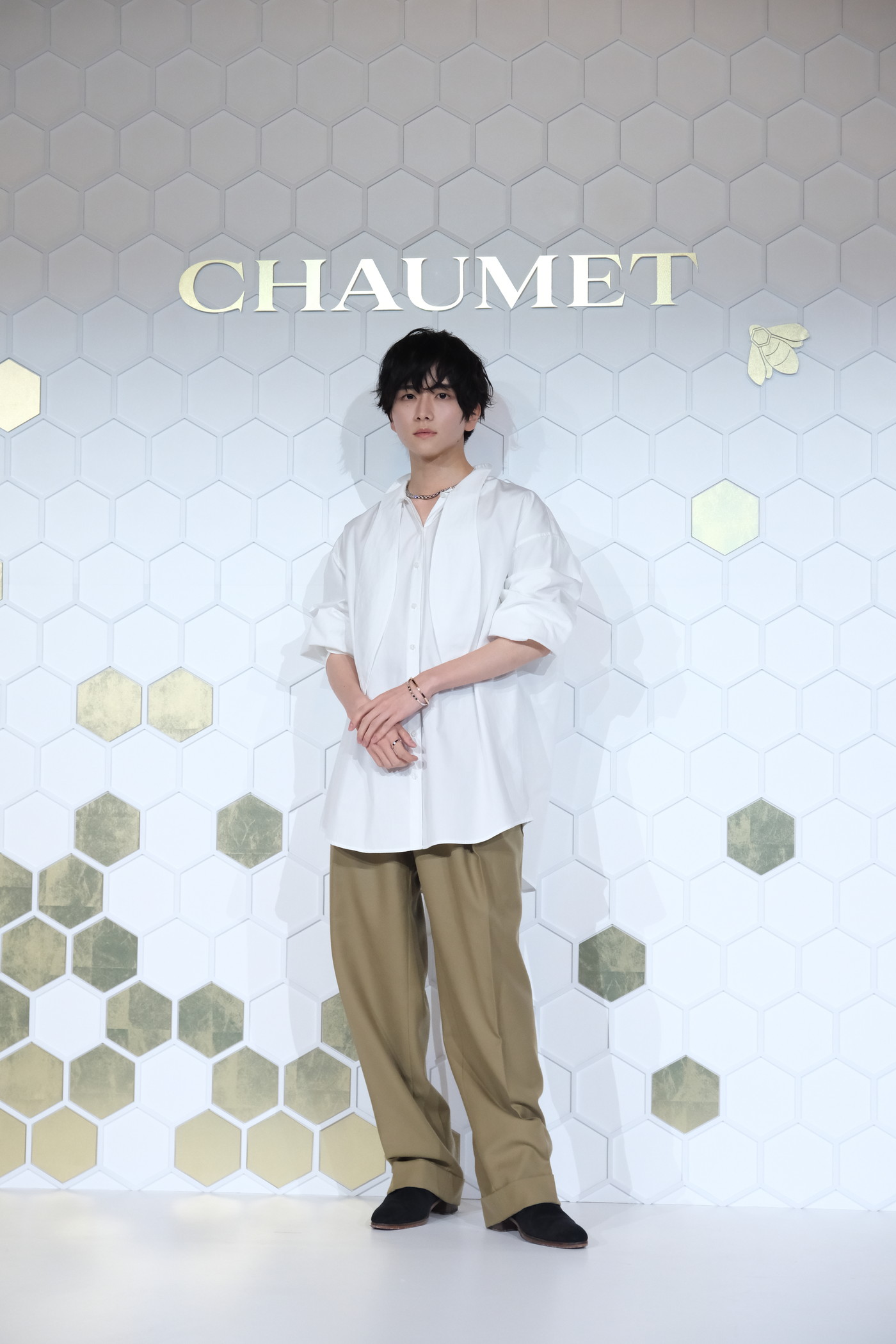板垣李光人は、デザイン性のあるオーバーサイズの白シャツをさらっと着こなし登場。ショーメの「自然への愛」というテーマにちなみ、自身が赤い糸で結ばれ、愛を感じるものを聞かれると「最近だと“みかん”。現場でいただいたり、自分でも購入するんですが、今冷蔵庫を開けるとオレンジ。ゼリーや飲み物含めみかん系で埋まっていて(笑)。昨夜も知らぬ間にみかんが入ったヨーグルトを購入していて、自分で自分が怖かったです(笑)。今はみかん愛に結ばれているのかなと思います」とエピソードを明かした。