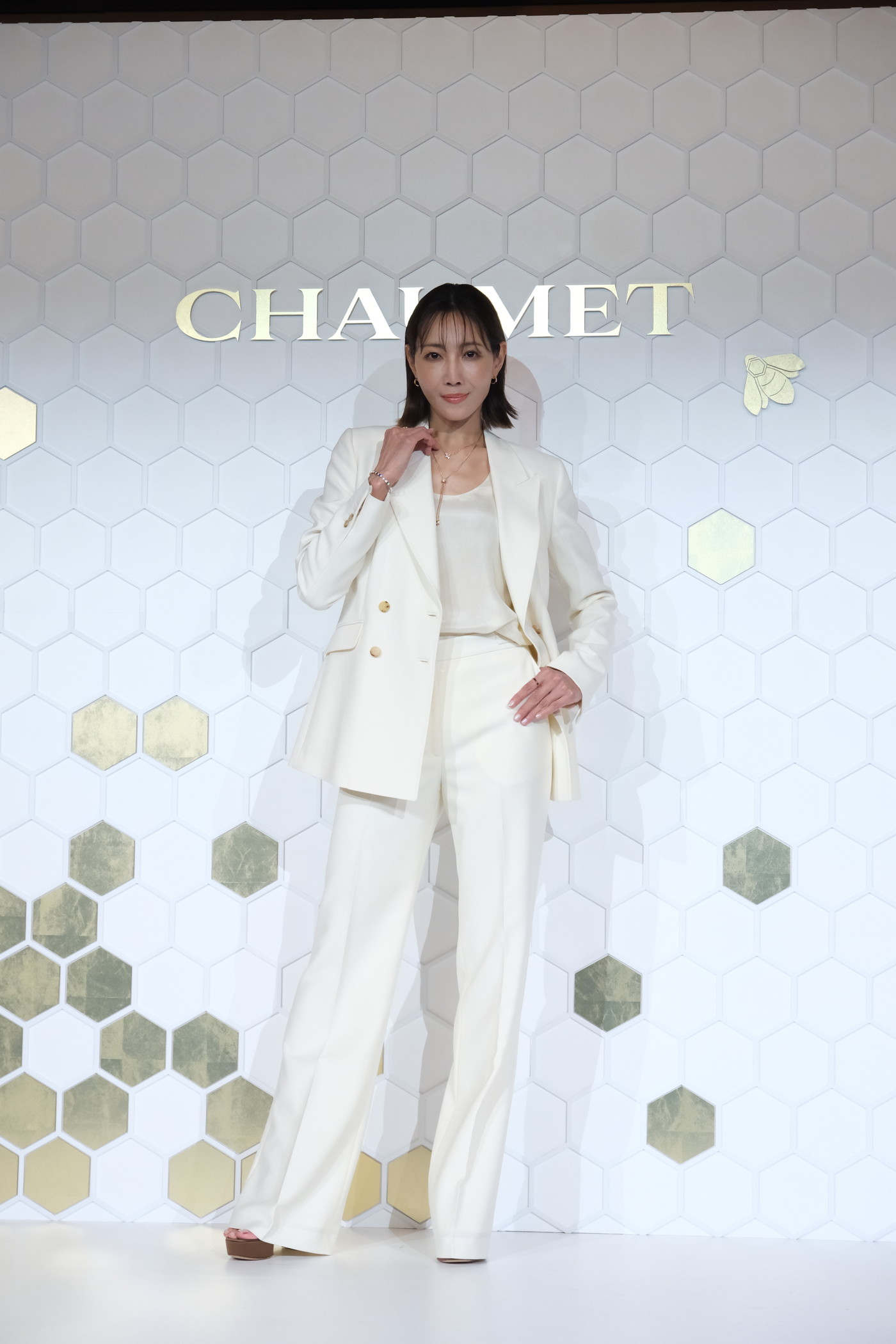 柚希礼音は、オールホワイトのスーツをカッコ良く着こなし登場。エキシビション『ショーメ、自然美への賛歌』を体験した感想を聞かれると、「ショーメといえば200年以上の歴史があってナポレオン御用達ということで。私宝塚時代にナポレオン役をさせてもらったりしていたので、あのナポレオンさんが愛用していたショーメさんをこんなにいっぱい着用することができて本当に幸せな時間でした」と話した。