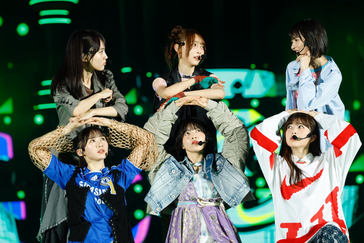 田村真佑をセンターに迎えた「錆びたコンパス」では岩本蓮加、金川、黒見明香、松尾美佑、矢久保美緒とともにパワフルさを提示し、コミカルさとかわいらしさが共存する「ぼっち党」では弓木、岡本姫奈、冨里奈央が個々の魅力を存分にアピール。川崎が伊藤理々杏、吉田、佐藤璃果、柴田、林、奥田いろはと一体感の強いダンスを見せる「あんなに好きだったのに…」、小川彩を中心に筒井あやめ、五百城茉央、菅原咲月がマリンルックで歌唱する「ボーダー」、梅澤と遠藤、池田瑛紗の3人のみで表現する「ごめんねFingers crossed」、久保史緒里や井上和、中西アルノが持ち前の歌唱力を遺憾なく発揮する「ひと夏の長さより…」と個性豊かな楽曲と組み合わせで観る者を楽しませ続ける。