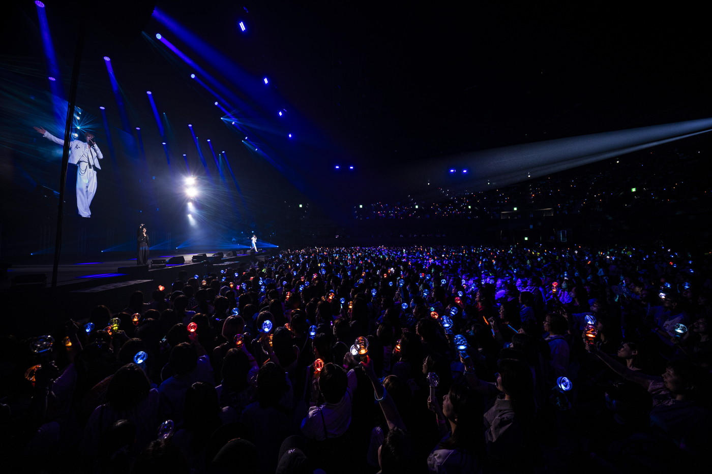 勢いのまま、「Don’t Worry」(TAKUMI)、「Pay Back」(KYOSUKE)とそれぞれのオリジナル楽曲を、今回は互いにフィーチャリング形式で披露。2025年1月に開催された『LAPOSTA 2025 Supported by docomo』のソロステージぶりのパフォーマンス、そしてお互いの曲を一緒に歌い、踊るスペシャルな演出にファンは大興奮。話題のAmazon Primeオリジナルドラマ『私の夫と結婚して』のテーマソング「So You Can Shine」では、尾崎の高音が突き抜けるように響きわたり、藤牧の穏やかな歌声が会場を包み込んだ。