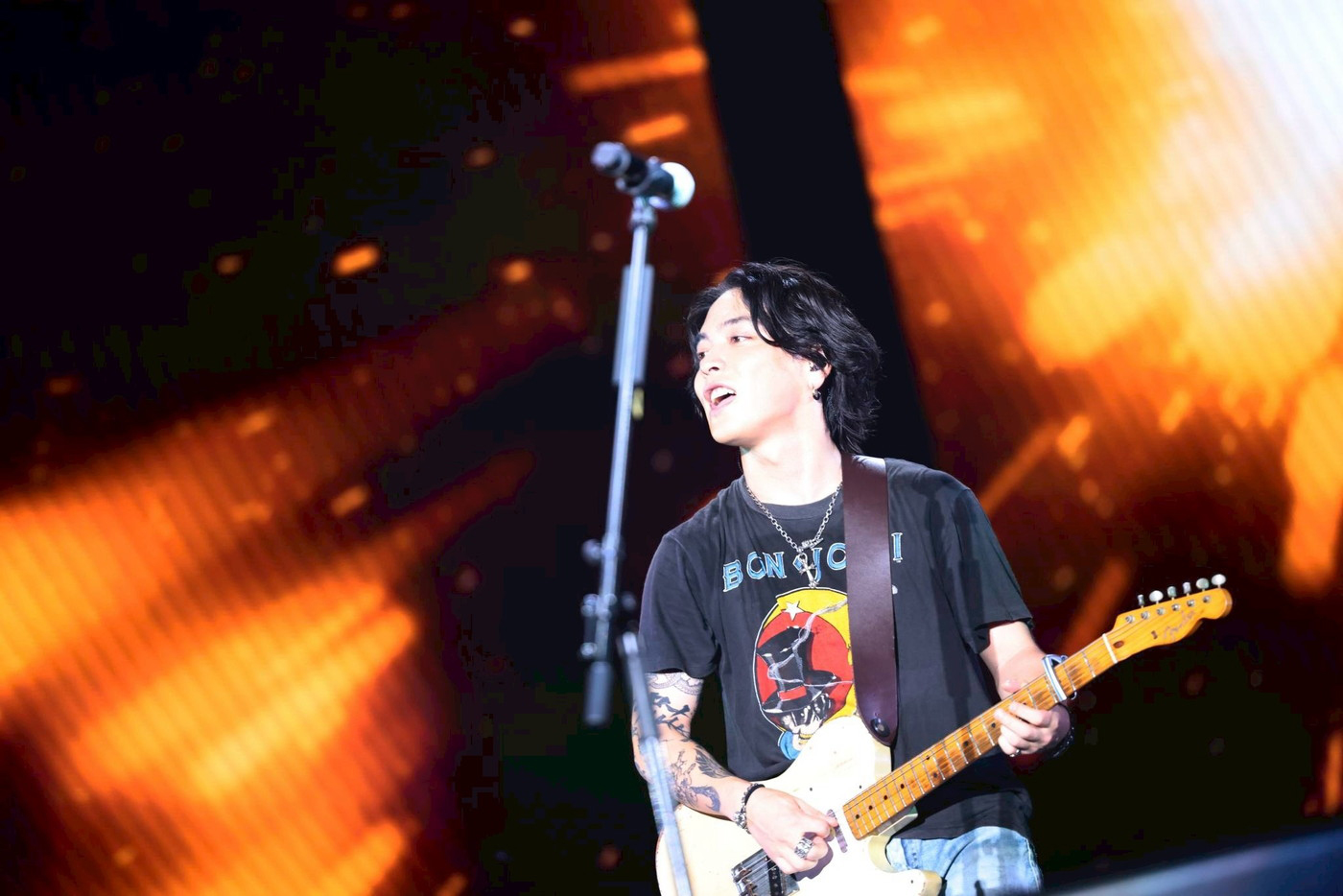 1曲目は今年リリースされたパワフルなバンドサウンドの楽曲「輪廻転生」。「生まれ変わっても自分になろう」というオーディエンスを鼓舞するようなメッセージを宿した歌と熱量の高い演奏で一気に場内の温度を上げた。特効の音玉で会場の熱気はさらに上がり、「飛行船」へ。ステージ上の巨大なLEDビジョンには青空の映像が映り、楽曲の雄大さを増大させる。歌詞と呼応するように、ビジョンに映った青空は大雨に変わり、最後は虹となった。