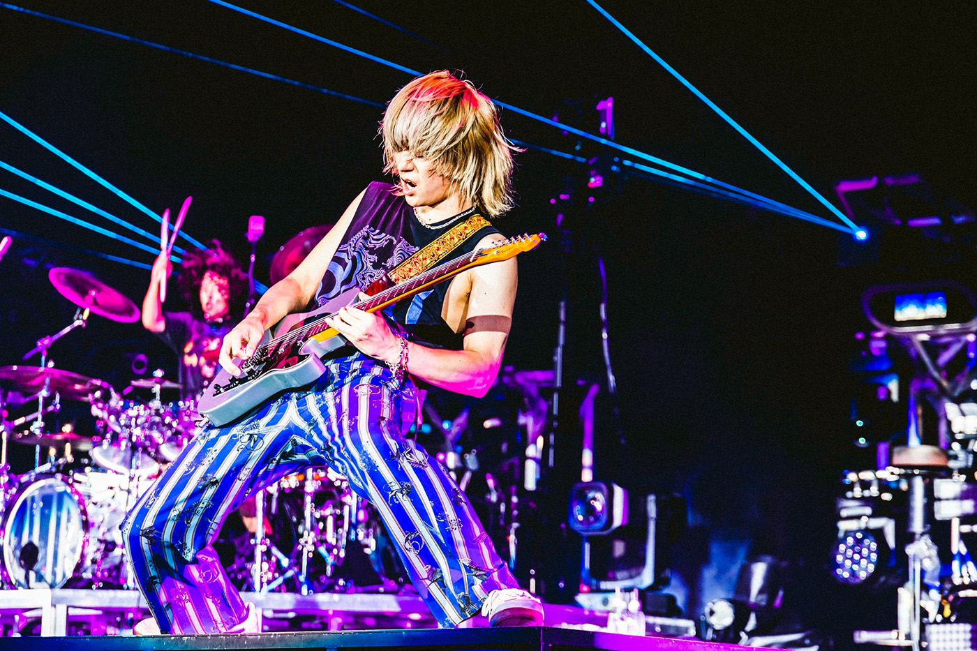 続いて「Instrumental」が始まるとToru、Ryota、Tomoyaによる息の合った圧巻の演奏と、バックスクリーンに映し出された映像が見事にシンクロ。