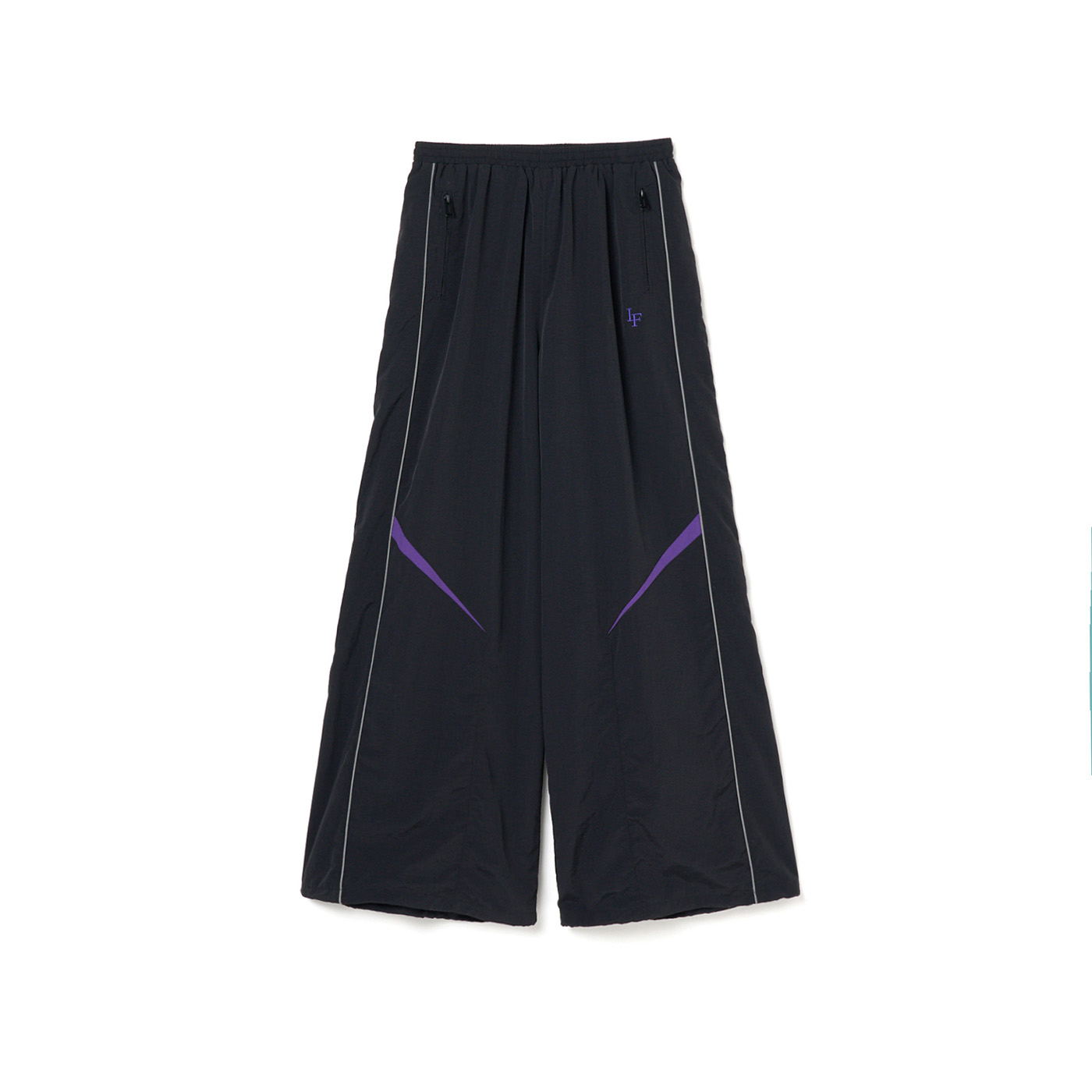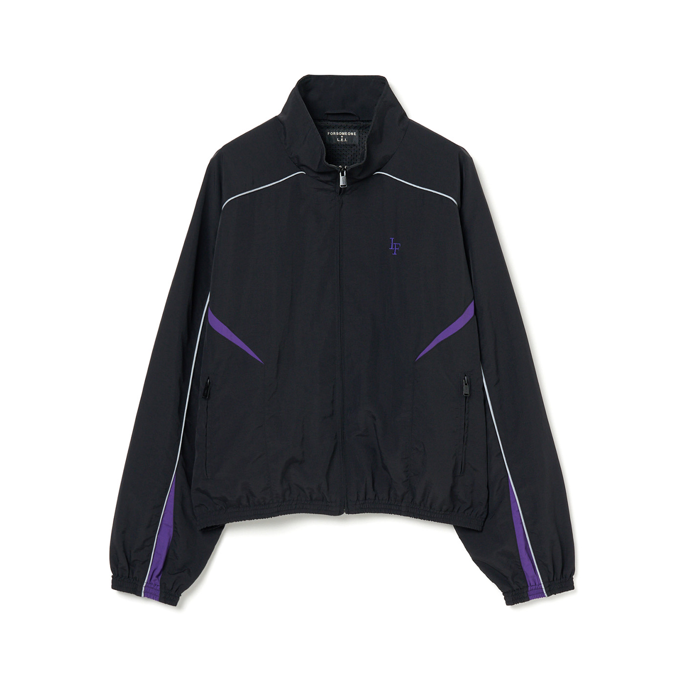 特にお気に入りは「LF NYLON TRACK JKT」と「LF NYLON TRACK PT」のセットアップとのことで、「シルエットもこだわらせてもらいました。かなりワイドなパンツになっていて、こういうセットアップジャージではあまり見ないアイテムで。(ジャケットは)僕あんまり長いのが似合わなくて、結構丈を短めに作りました。色もパープル入れさせていただいて。シルエットはかなり攻めているのにすごくシンプルで、しかもめっちゃ軽くて着やすいのでファンの方にも着てほしいですね」とおすすめ。