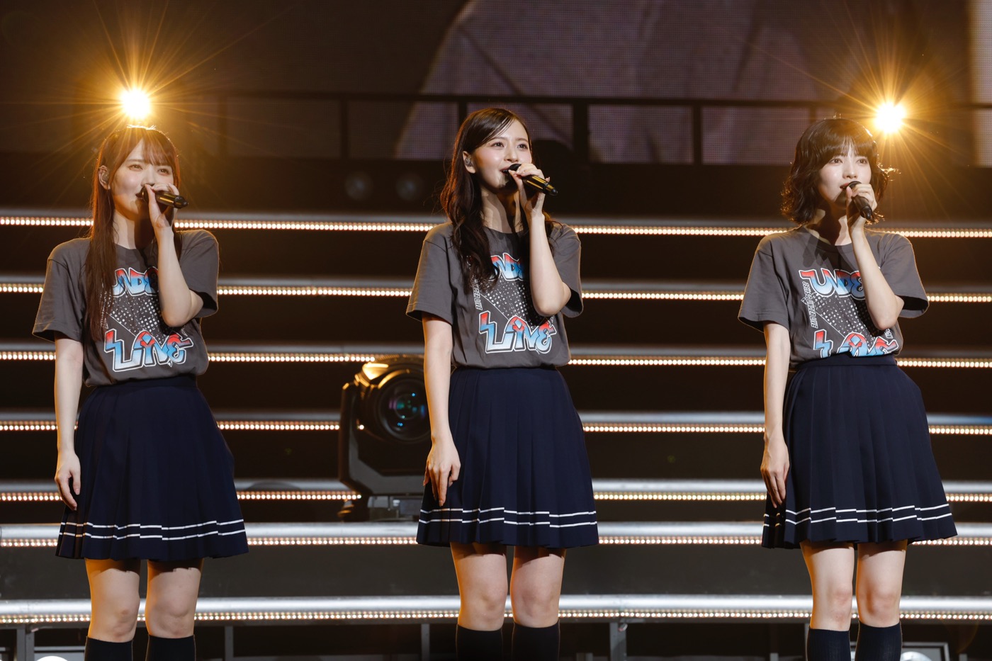 約1年ぶりのアンダーライブ参加となる奥田いろはがセンターに立つ「落とし物」でライブは再開。岩本の呼びかけでメンバー、オーディエンスがシンガロングでひとつになる「~Do my best~じゃ意味はない」、アリーナが青、スタンドが白で染まるなか、佐藤を中心に華麗なパフォーマンスを見せる「滑走路」、前回の「38th SG アンダーライブ」で座長を経験して、いちだんと逞しくなった柴田柚菜が弾けるような笑顔を見せる「交感神経優位」と、過去のアンダーライブを彩ってきた名曲、人気曲が次々と披露されていく。
