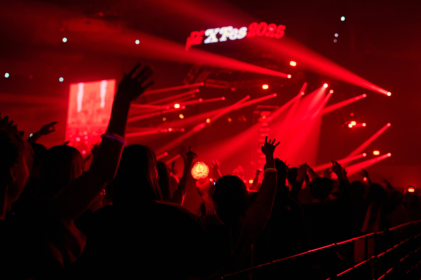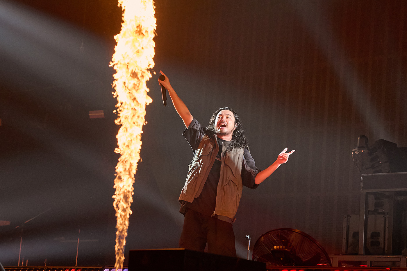 初日の大トリを務めたCreepy Nutsは全12曲を披露。オーディエンスの手拍子で会場が揺れるなか、「まだ元気残ってるか埼玉ー!」と叫び、R-指定が自身の子供と地元・大阪の神様を重ね合わせた楽曲「ビリケン」からスタート。夜をモチーフに描いた「よふかしのうた」「堕天」では、「夜ふかしして盛り上がれるヤツ、手上げてみろ!」と煽り、「出向いたさいたまスーパーアリーナ!」とアドリブで歌詞をアレンジし、会場全体が大きく沸く。MCでは「XG終わったのに残ってくれてありがとう」と会場を盛り上げる。欲望をテーマに描かれた楽曲「ちゅだい」など、今年リリースされたアルバムの楽曲を圧倒的なラップスキルと声量で次々と披露。続いて、常人離れの高難易度DJルーティンを披露するDJ松永のプレイに会場の雰囲気は最高潮に達し、その勢いのまま世界的大ヒット曲「Bling-Bang-Bang-Born」が披露され、今日一番の盛り上がりを見せた。R-指定さんの「今日とんでもなく盛り上がった。けどな、明日もあんねん、まだX Fesは折り返し地点やねん。まだ“のびしろ”があるってことです」というMCとともに最後の曲は人気曲「のびしろ」。会場全体で「のびしろしかないわ!」と合唱し、明日への期待感が会場に充満するなか、初日は終幕を迎えたのだった。