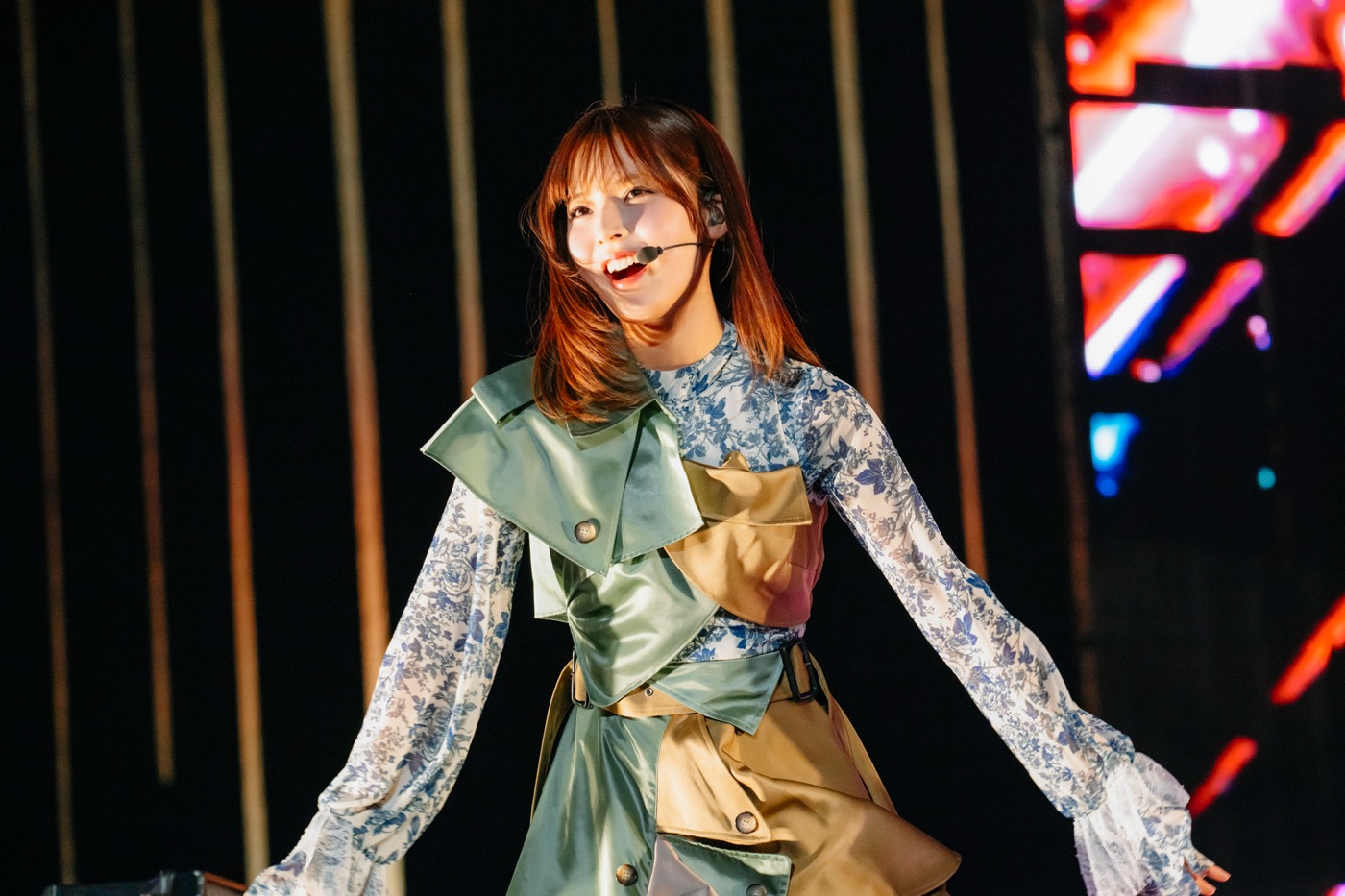リラックスモードのMCに続いては、井上梨名の「声出す準備、できてますか?」を合図に自身がセンターを務める「確信的クロワッサン」でライブは再開。花道を目一杯使って、広い会場に向けて笑顔を振り撒いていく。また、卒業を控えた井上のペンライトカラーである青一色に客席が染め上げられると、「みんなのことが大好きだよ!」と感謝を伝える場面もあり、会場は幸福感に包まれた。この流れを引き継ぐように、小田倉麗奈センターの「君と僕と洗濯物」では牧歌的な空気の中、柔らかな表現を交えた歌とダンスで観客を楽しませる。かと思えば、「コンビナート」では再び会場の熱気がヒートアップ。客席がオレンジ色に染まる中、センターの増本を中心とした軽やかなダンスで、Buddiesを夢中にさせる。