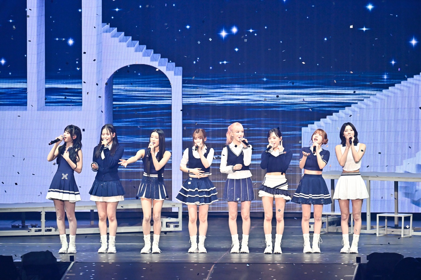 アンコールは、ME:Iの原点ともいえる「LEAP HIGH! ~明日へ、めいっぱい~(ME:I Ver.)」で幕開け。客席に散らばったメンバーは、サインボールを投げたり手を振ったり、YOU:MEと至近距離でコミュニケーションを楽しむ。そしてこの季節にぴったりなウィンターソング「Sweetie」をYOU:MEのためにパフォーマンス。ペンライトが赤と緑に光るなか、メンバーはかわいらしくサンタやトナカイのカチューシャを被り、会場をクリスマスムードで包んだ。