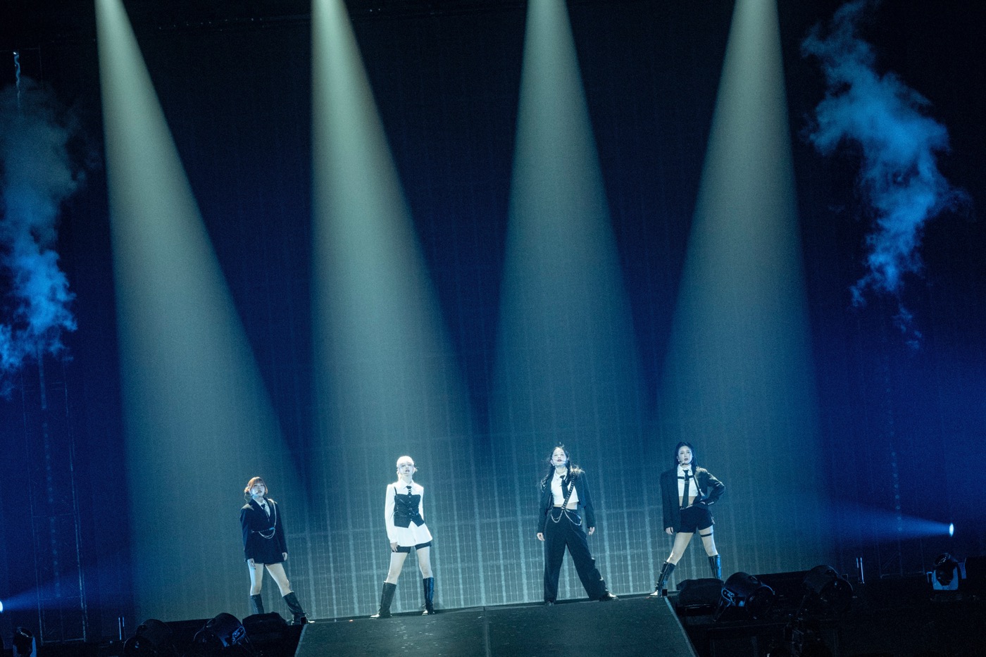 「Sugar Bomb」はしっとりとしたJazz Arrange Ver.にアレンジされ、メンバーがセットの段差を活用したしなやかなダンスと、大人っぽい表情で魅了。KOKONAの「テンション上げていきましょう!」という威勢のいい煽りで始まった「Hi-Five-Punk Arrange Ver.-」は、マイクスタンドを華麗に操り、パワフルにパフォーマンス。AYANEとTSUZUMIの力強いロングトーンが会場を突き抜ける。「キラキラ」は学校のようなセットの中でメンバーが仲睦まじいやりとりを見せ、くるくると変わる表情と仕草でYOU:MEを楽しませた。
