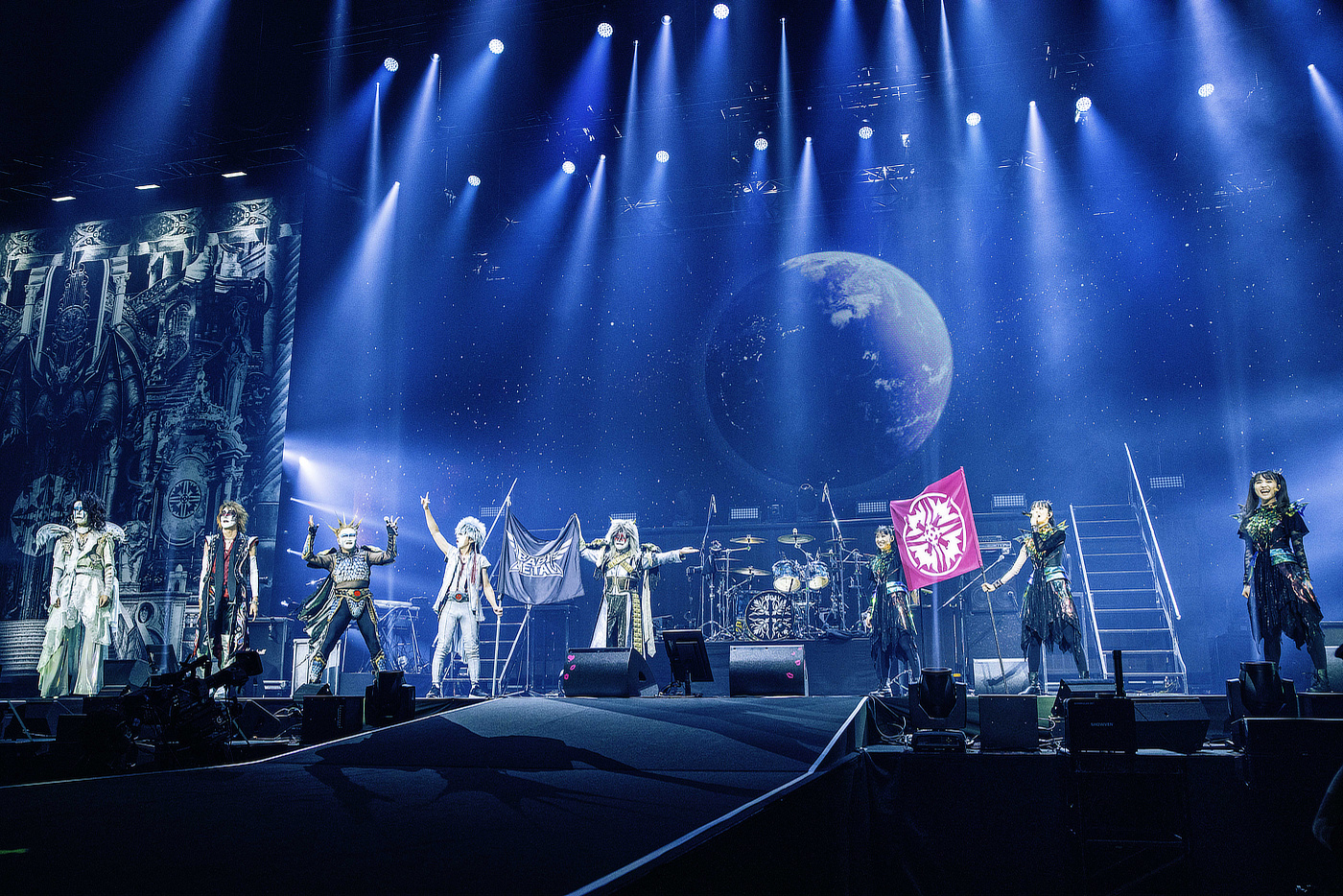 サポートメンバーのギタリストRENOファウスト(Damian Hamada’s Creatures)とキーボーディストKAMISORI SYUTO(3470.mon)を紹介し送り出した後、聖飢魔IIとBABYMETALは互いにエールを贈り合い、最後はデーモン閣下とSU-METALがお互いのフラッグを交換する儀式を執り行なって光の中へと消えていった。スクリーンには宇宙から見た地球の姿が映し出され、鐘の音が鳴り響く。あまりにも感動的なフィナーレだった。