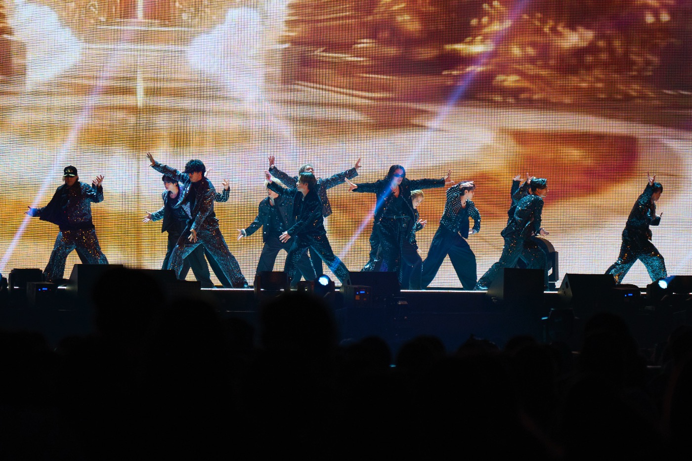 そんなダンスブロックを経て、デビュー24周年を迎えた9月27日にリリースした新曲「Get-go!」が披露されると、早くも本編終盤。ATSUSHI、TAKAHIRO、NESMITH、SHOKICHIの歌声を全身に浴びながら、パフォーマーもリズミカルに手を振る。そして「VICTORY」「Someday -House Mix」の掛け声やタオルまわしで、さらに心をひとつに。「BOW & ARROWS」では、メンバーが固まってポージングをとる傍ら、NESMITHと世界がおどける場面もありつつ、「WON’T BE LONG」「Ki・mi・ni・mu・chu」「銀河鉄道999」といったライブ定番曲で賑やかに駆け抜けた。